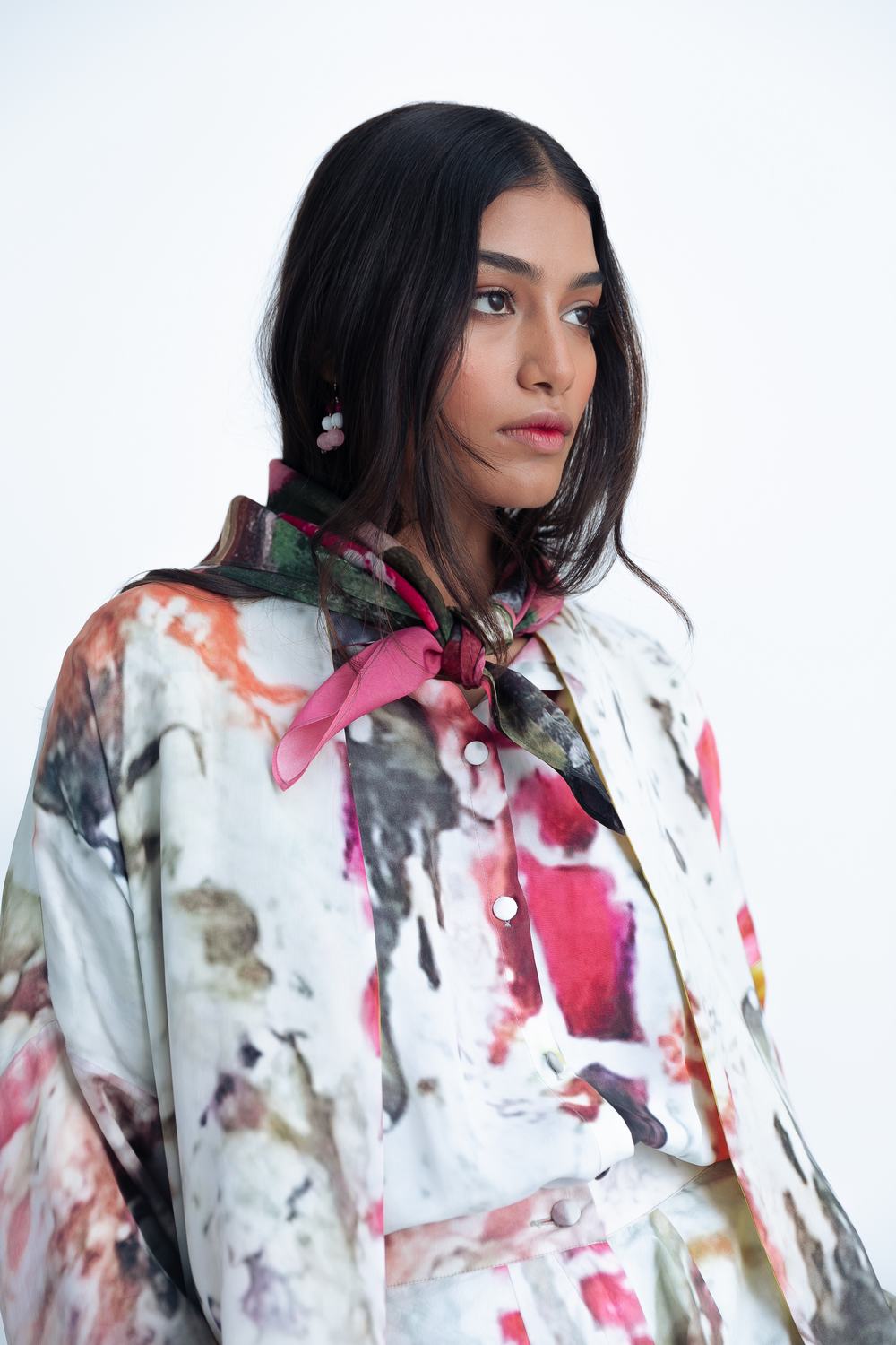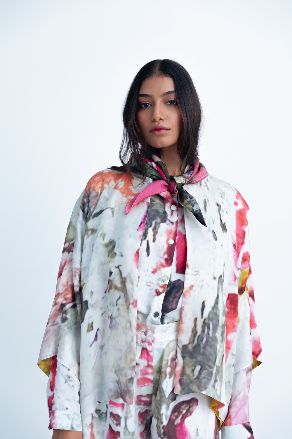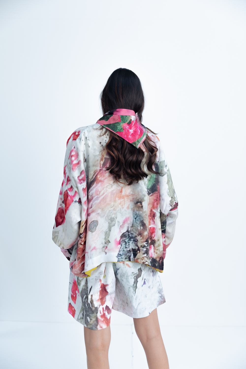 Front open reversible jacket printed in whispers of spring and impressionist Soft hand feel Jacket is sold as separate Relaxed fit The print placement will vary from piece to piece.
