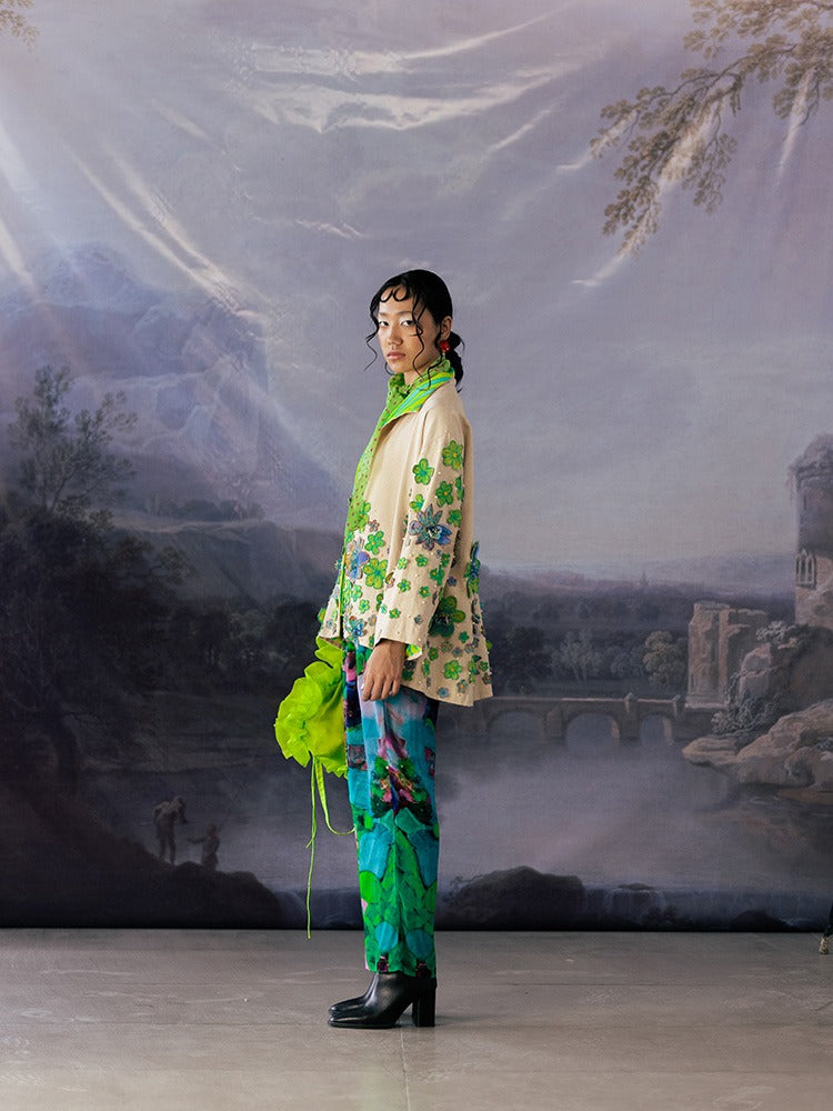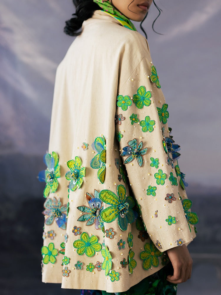 - Canvas jacket with quilted flower and intricaqte bead embroidery
