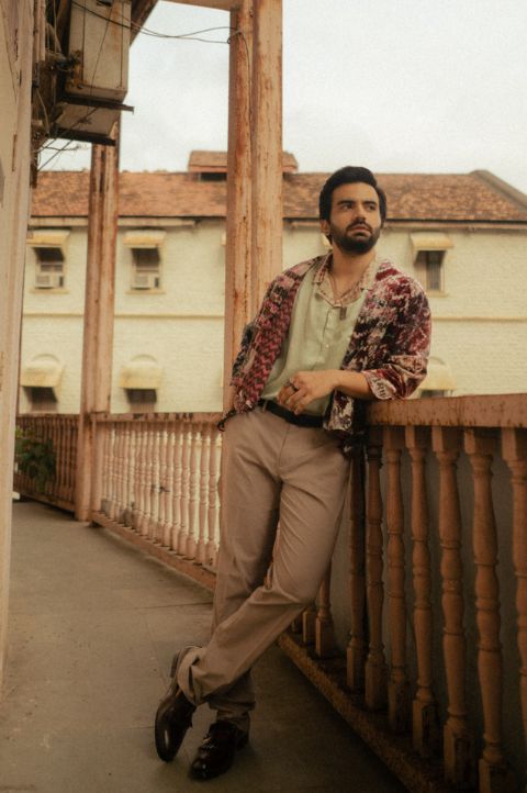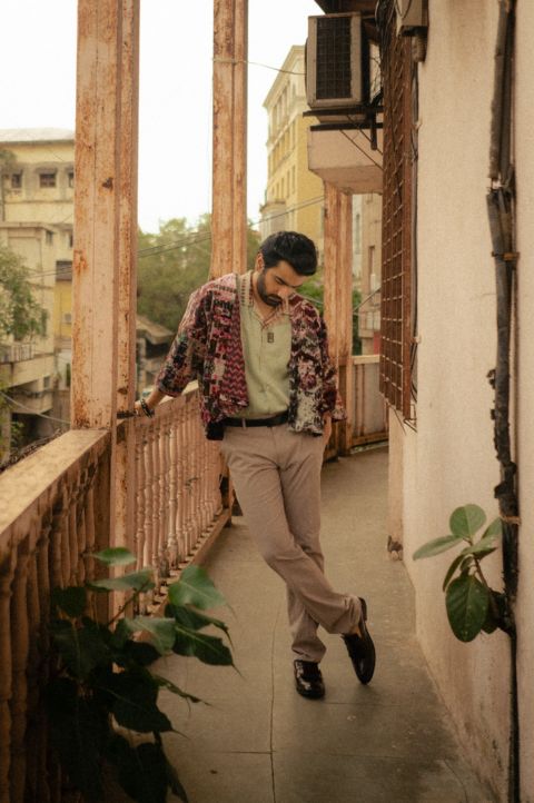 Yavi’s signature Silk velvet jacket in a IMPRESSIONIST print in hues of pink . The jacket comes with a multi checks lining and checkered collar facing and pockets.