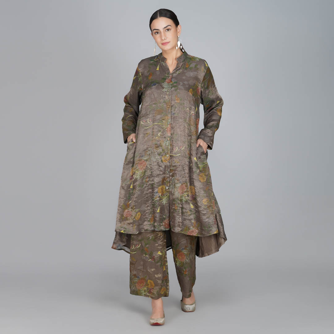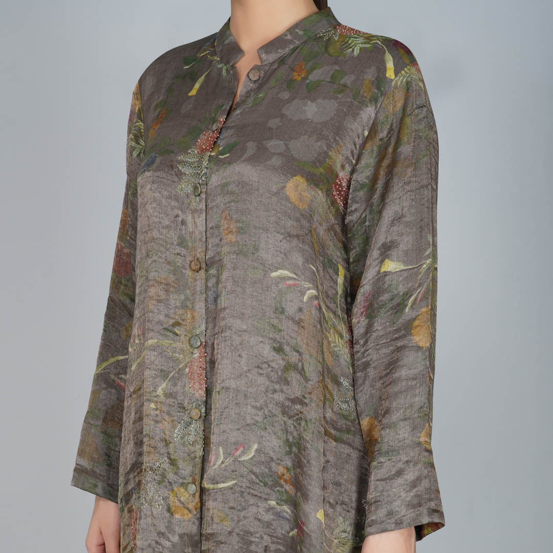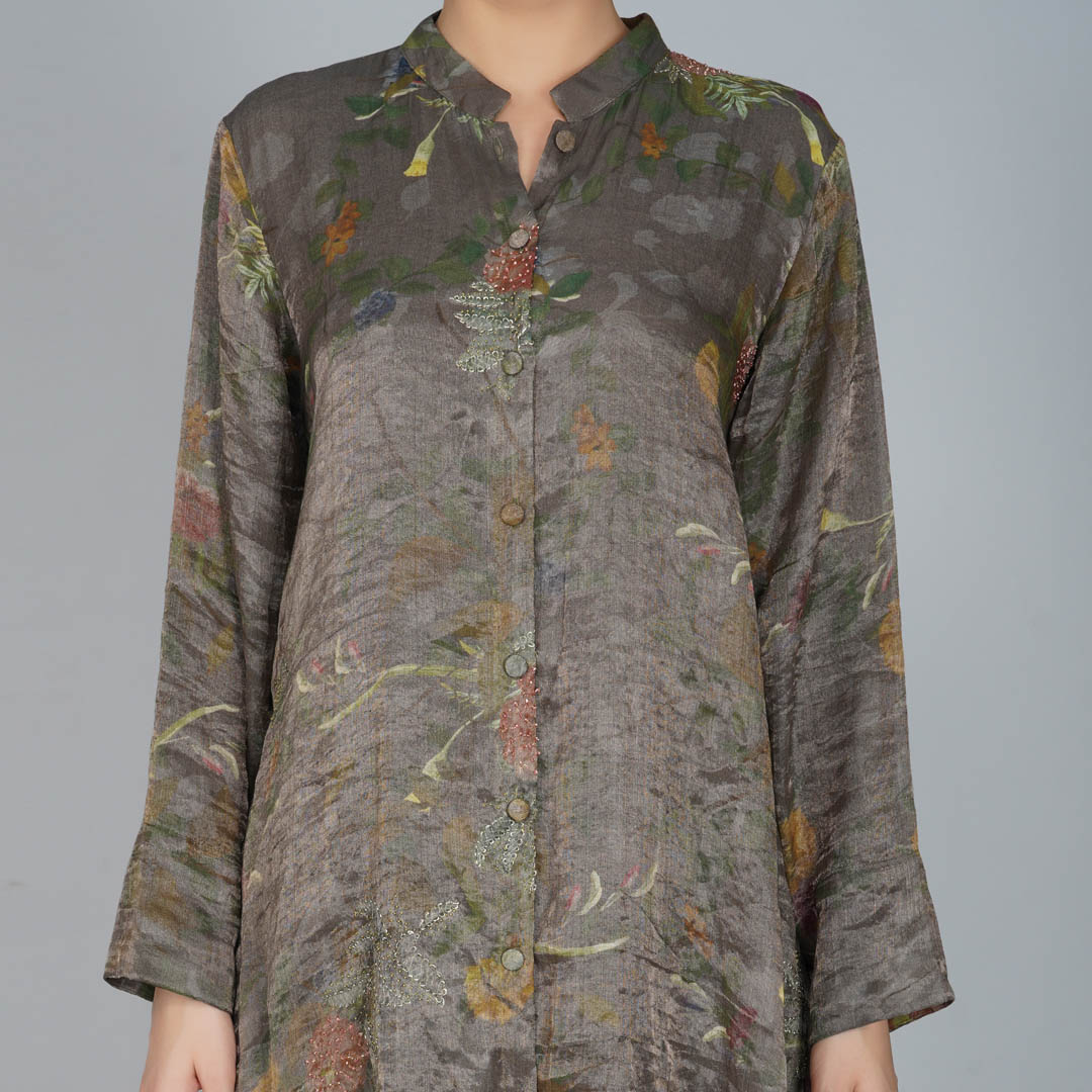 Yavi embraces the inimitable contemporary Floral prints enveloped in traditional textiles, a collection that bespeaks of exquisite handmade surface with ' Adda work".