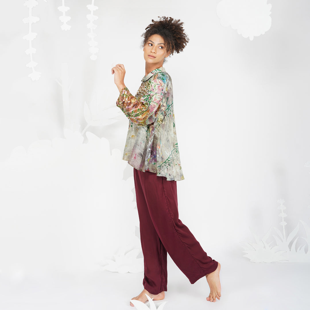 Yavi’s signature Impressionist prints, carefully made by placing layer of paint upon layer, in a modern way on silhouettes, making this a statement piece that you can wear with comfort.