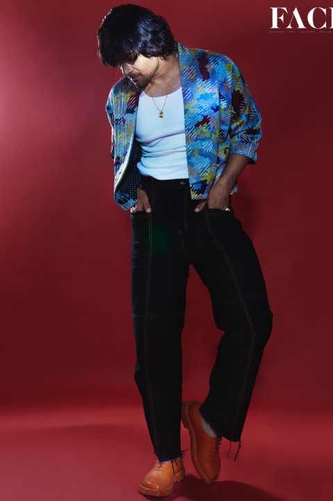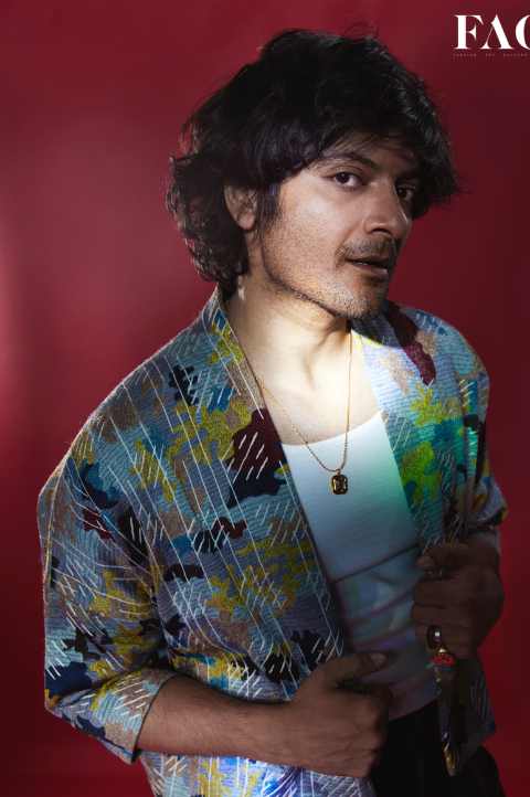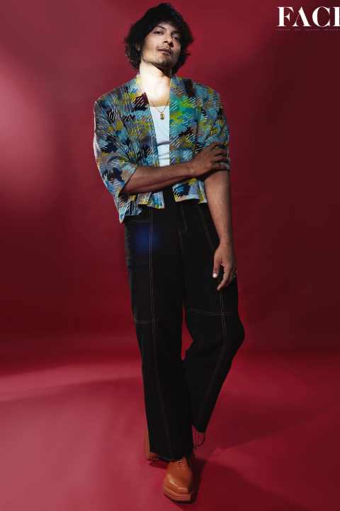 One thread embroidery jacket in Yavi's impressionist story in blue,red,yellow and green color story