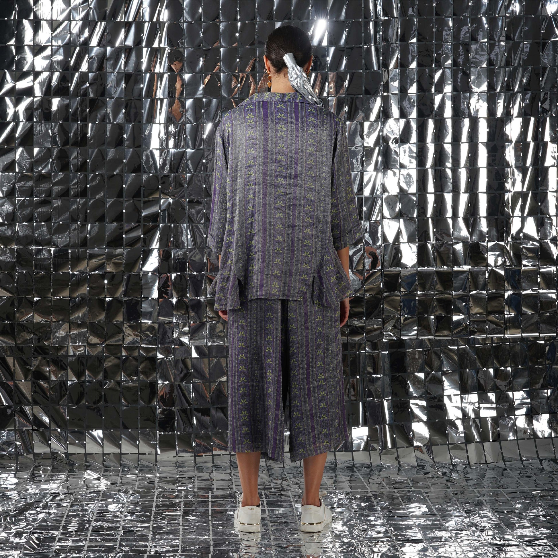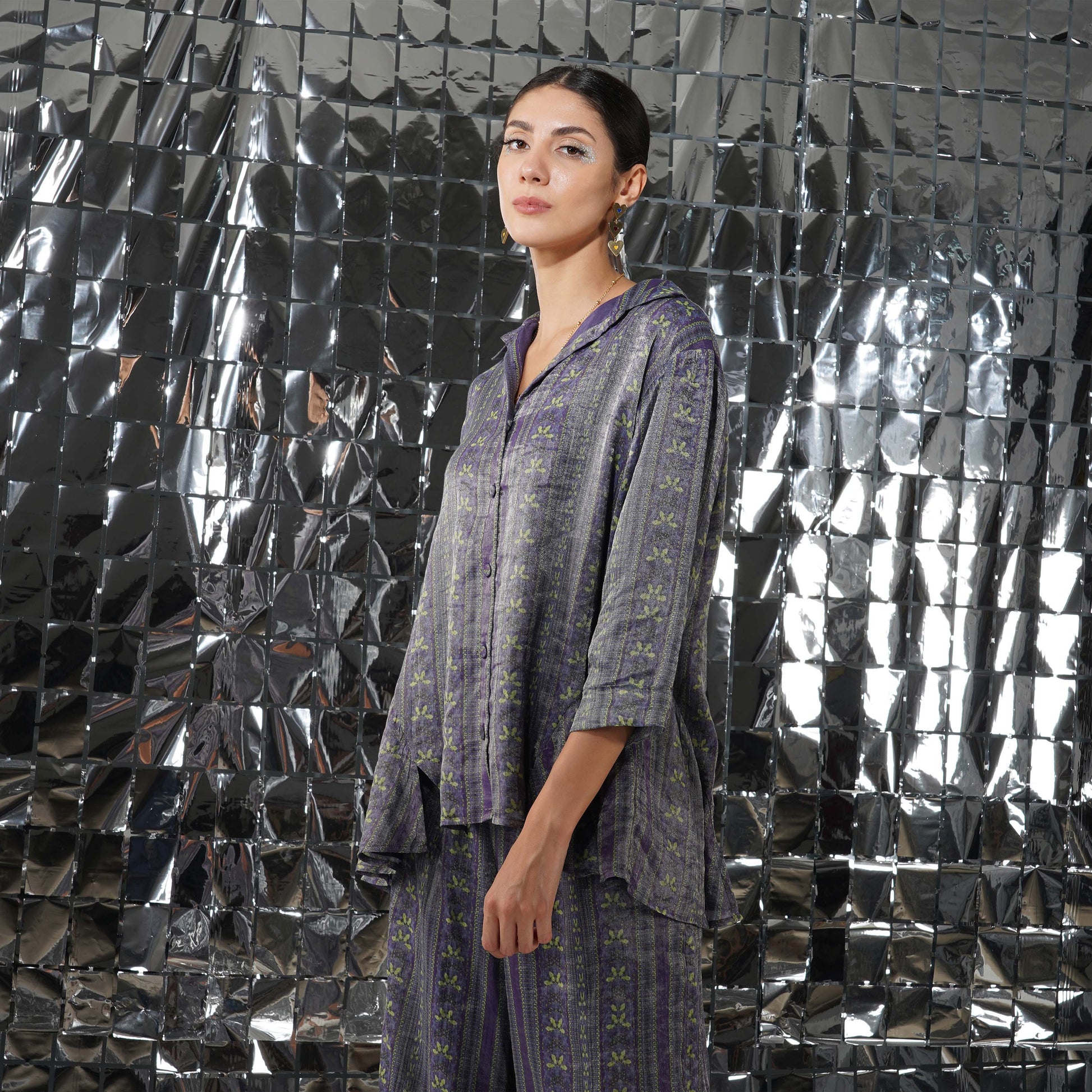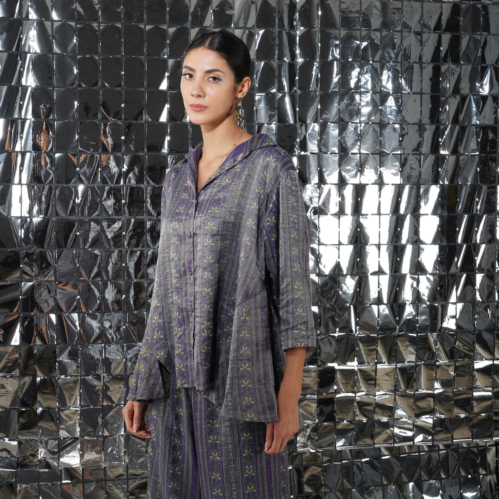 Experience a chic interpretation of silhouettes that places a focus on comfort. By fusing the fascinating themes of kaleidoscope in silver cotton tissue, this versatile shirt is elevated.