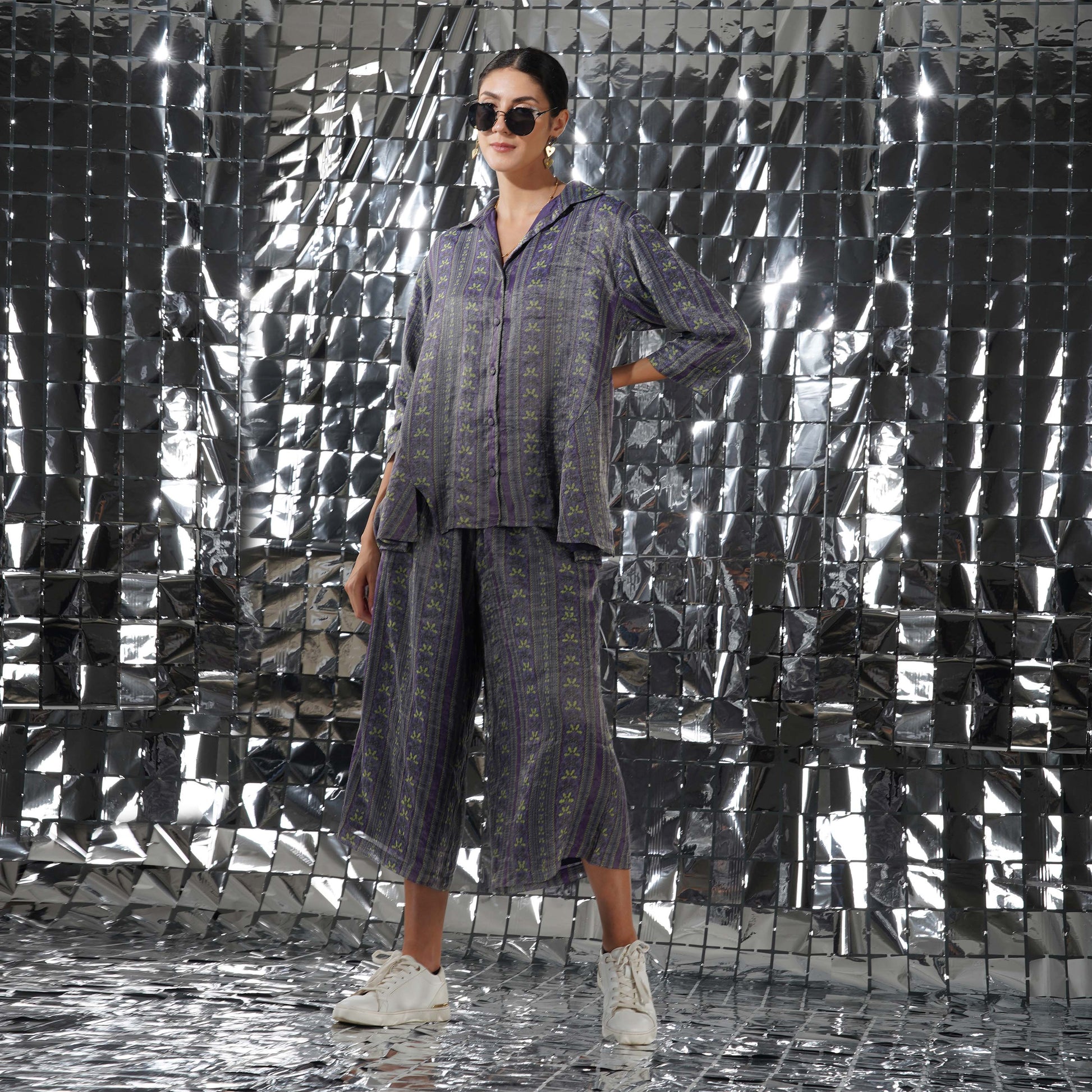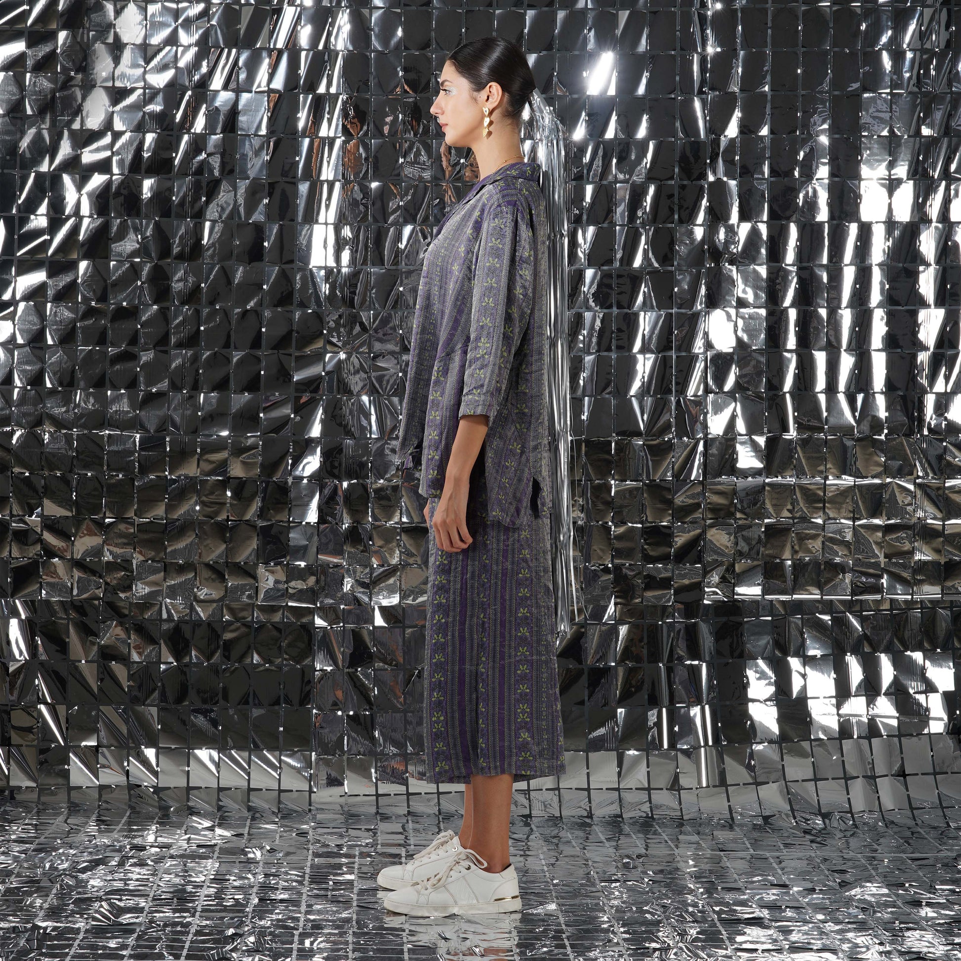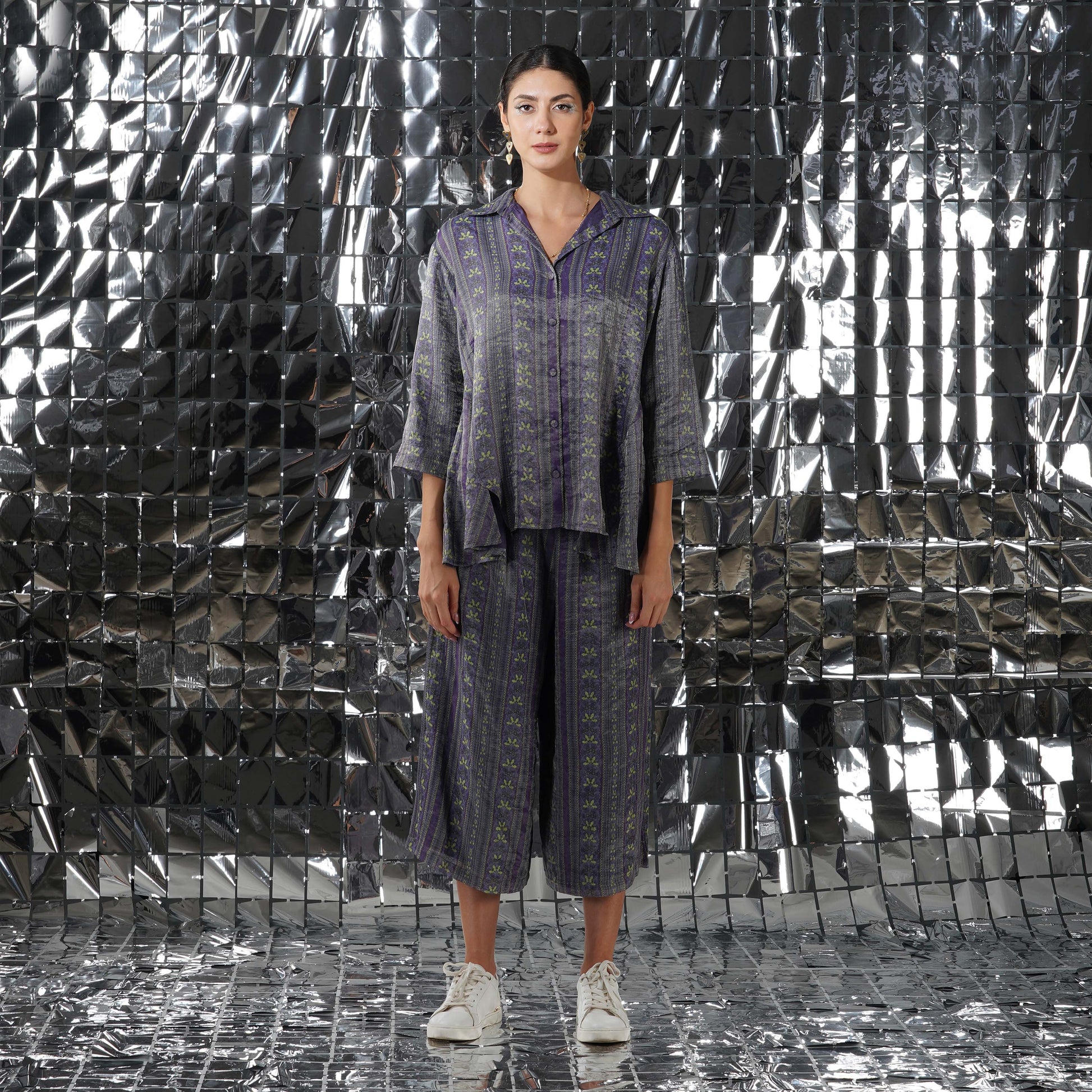 Experience a chic interpretation of silhouettes that places a focus on comfort. By fusing the fascinating themes of kaleidoscope in silver cotton tissue, this versatile shirt is elevated.