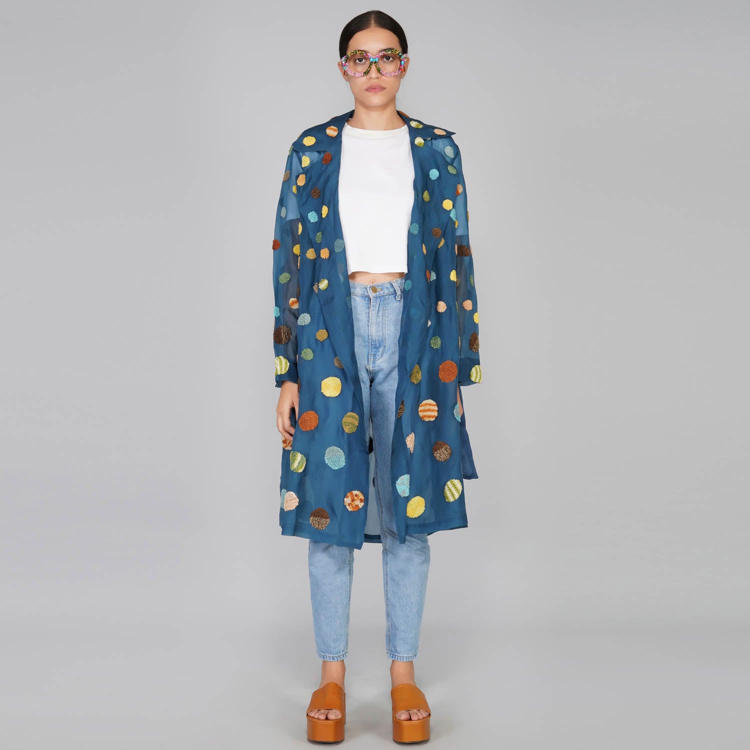 Exploring the possibilities of a dot with hand embroidery using pile technique to create three dimensional subtle landscapes on yavi garments.