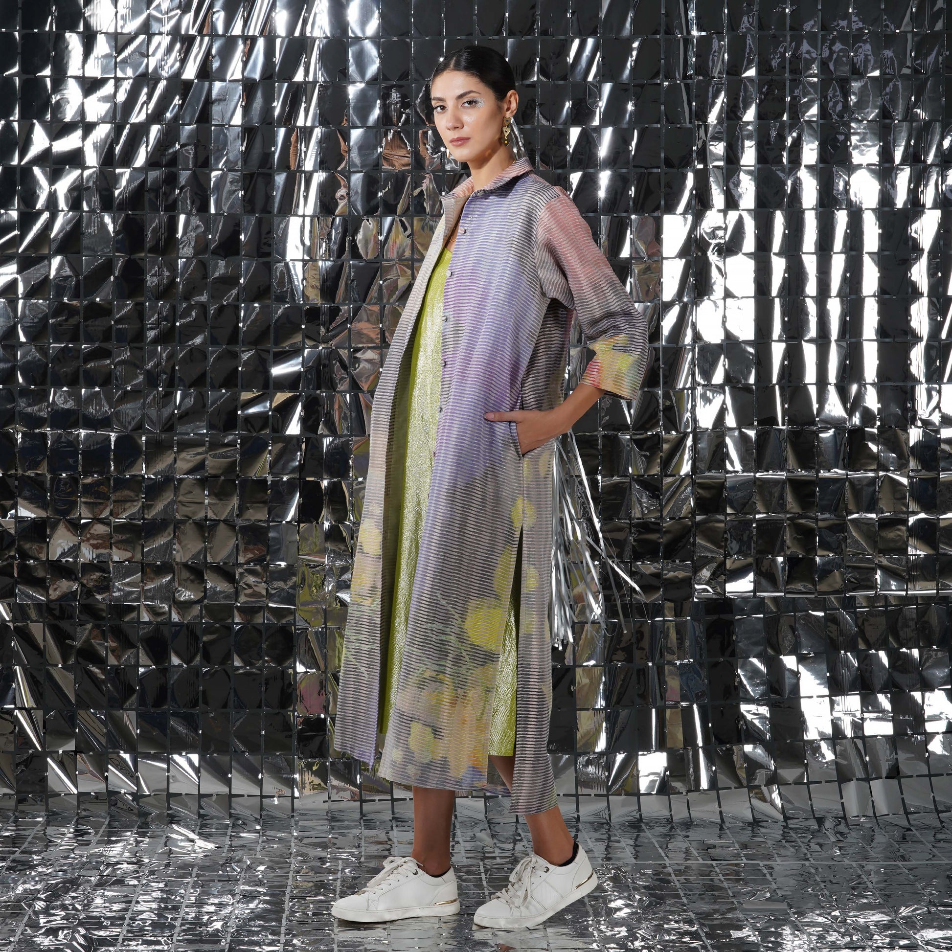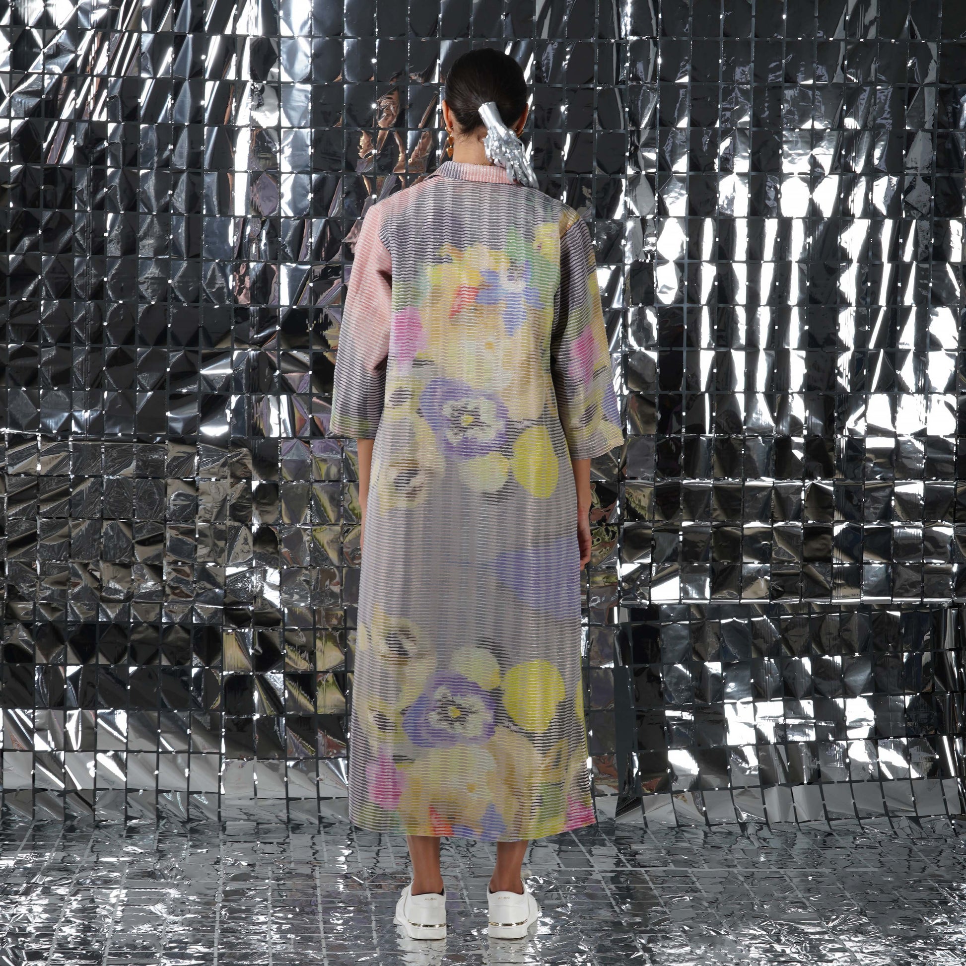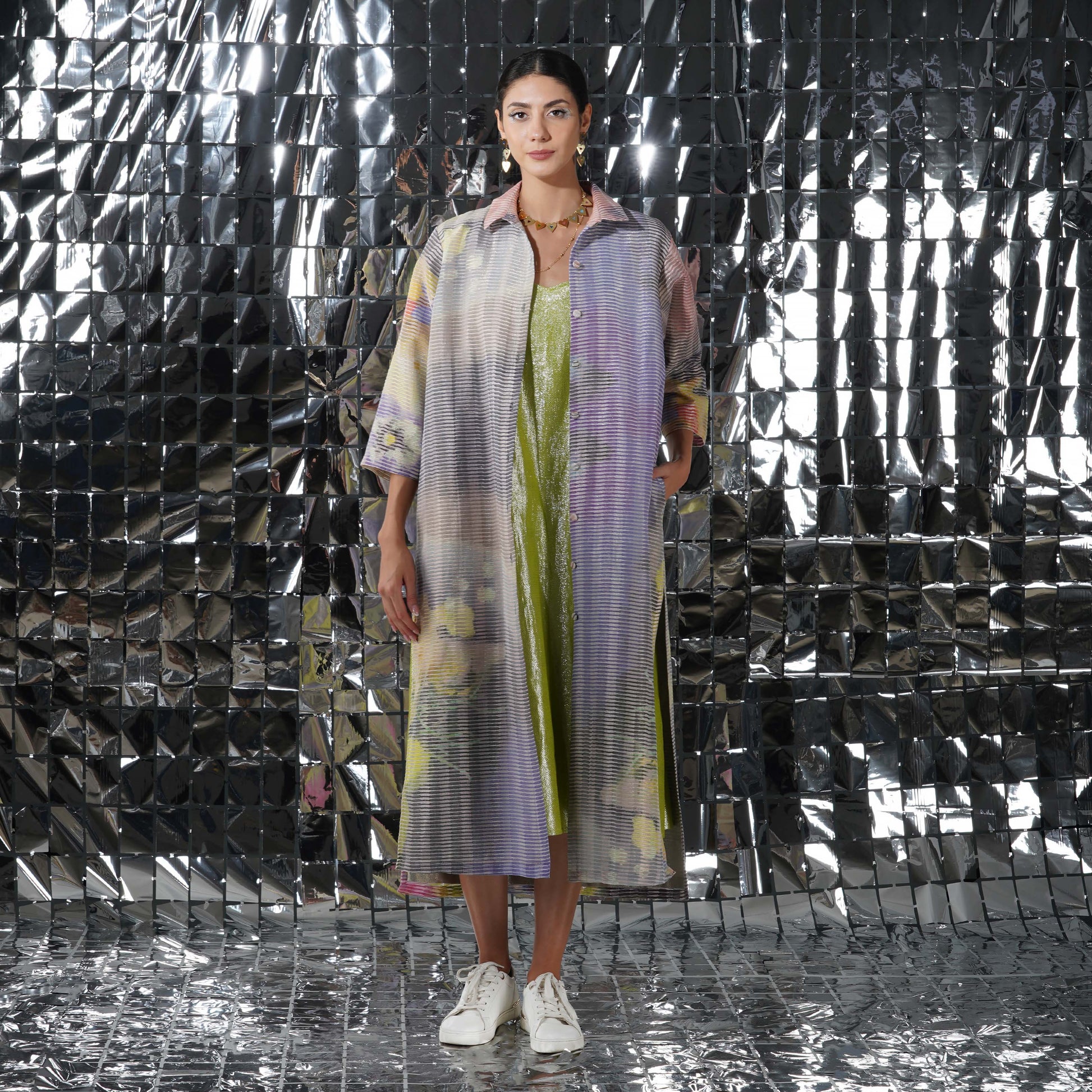 Food art-inspired design finds a contemporary canvas on Yavi garments. With a vibrant floral printed long overlay, the elegant cupid jacket is alive with the spirit of springtime.