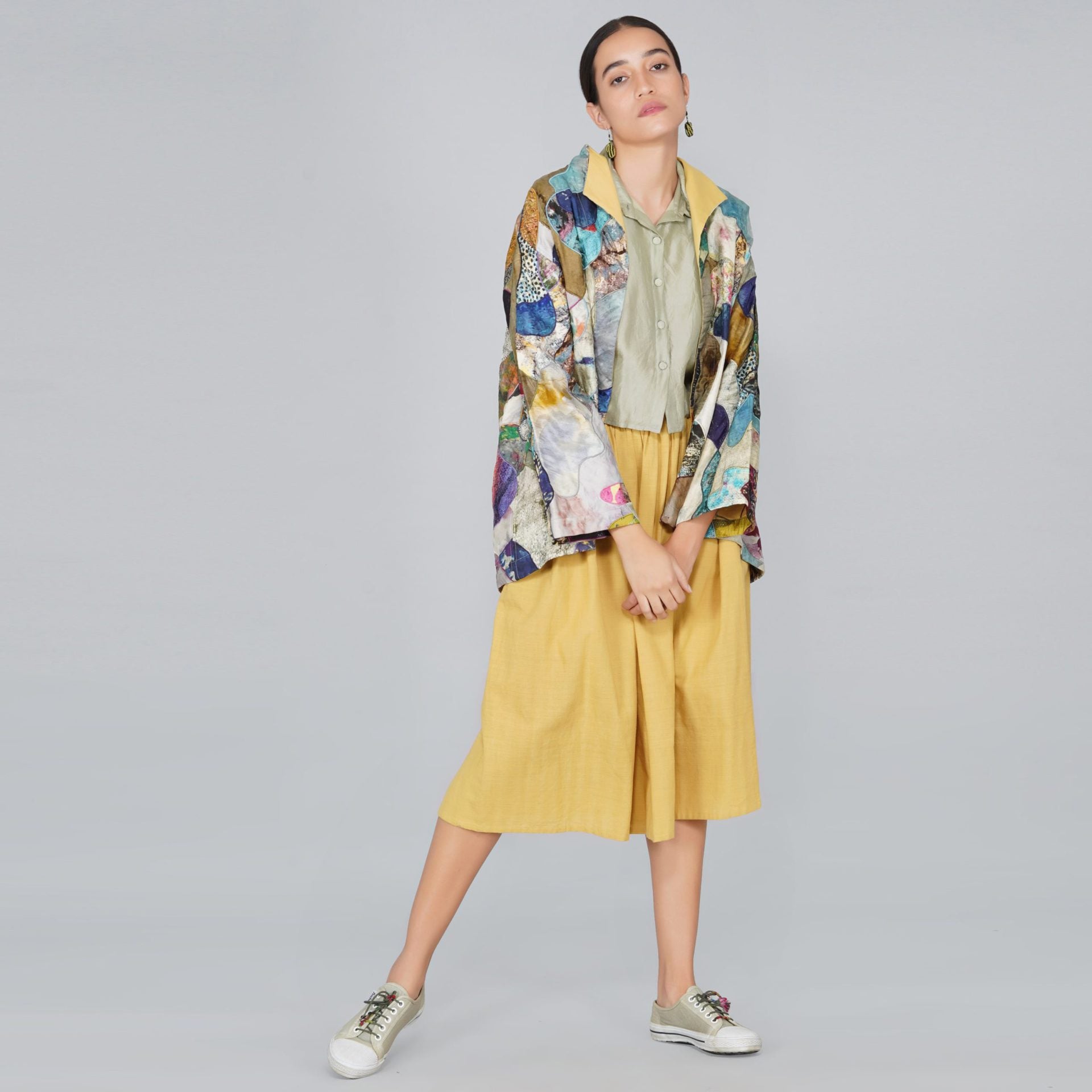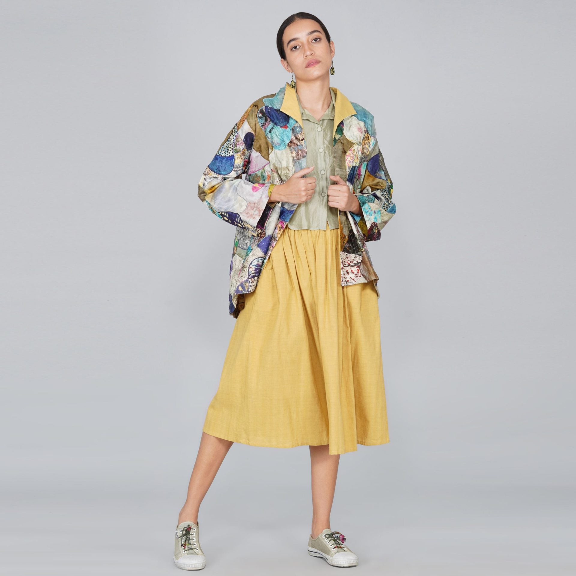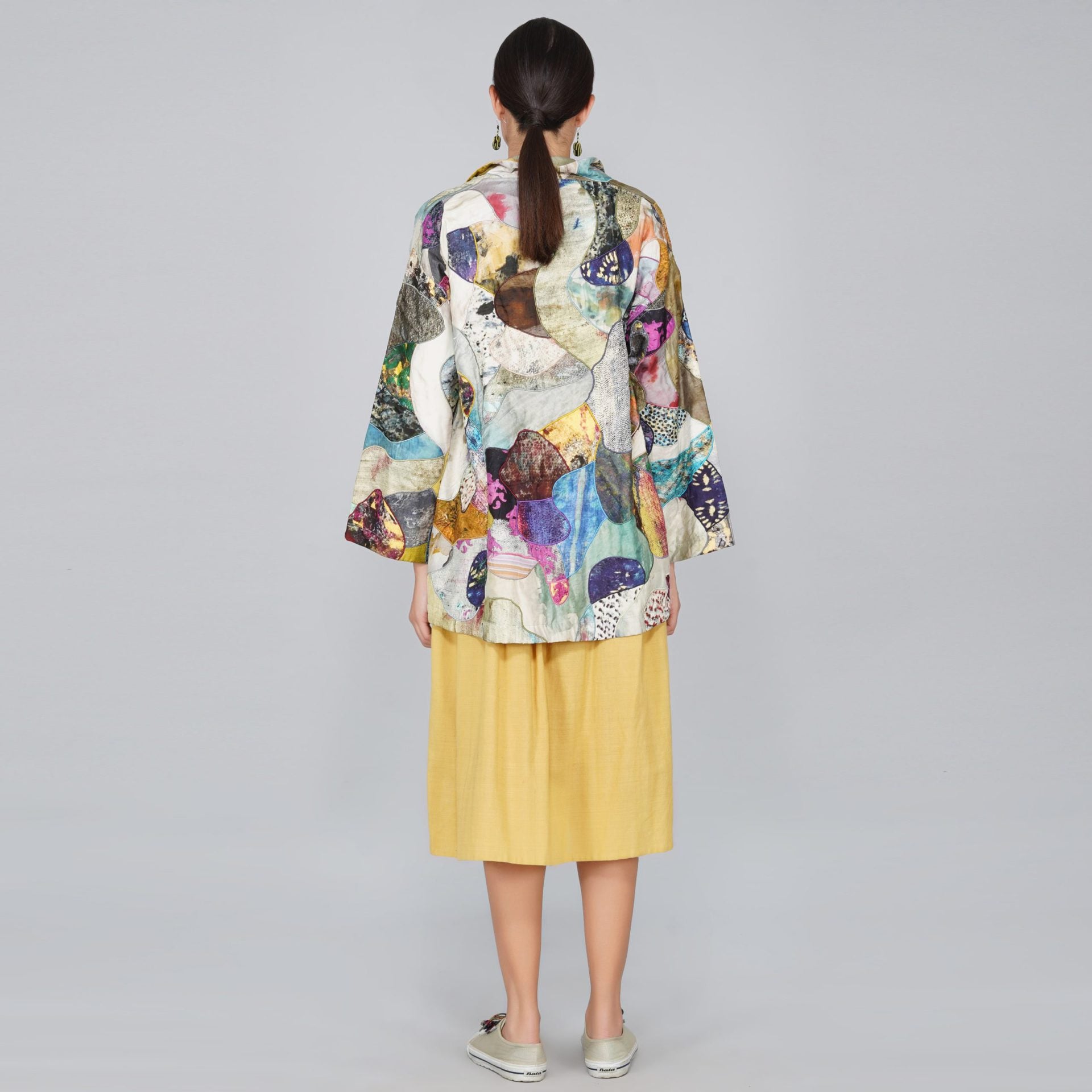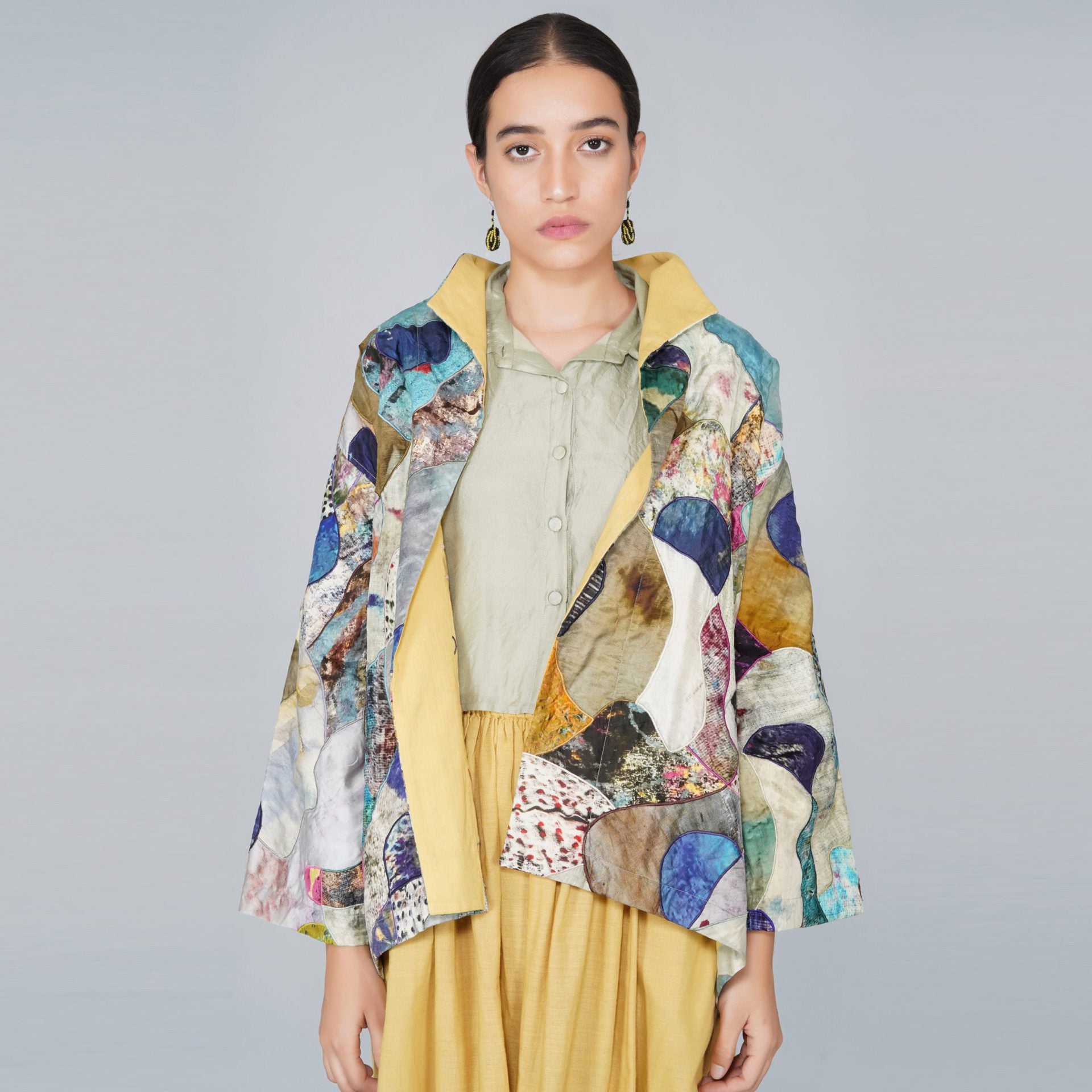 Up cycling breathes new life into bits of fabric that get left behind through techniques like patchwork merged with dimensional thread-work and organic abstractions.
