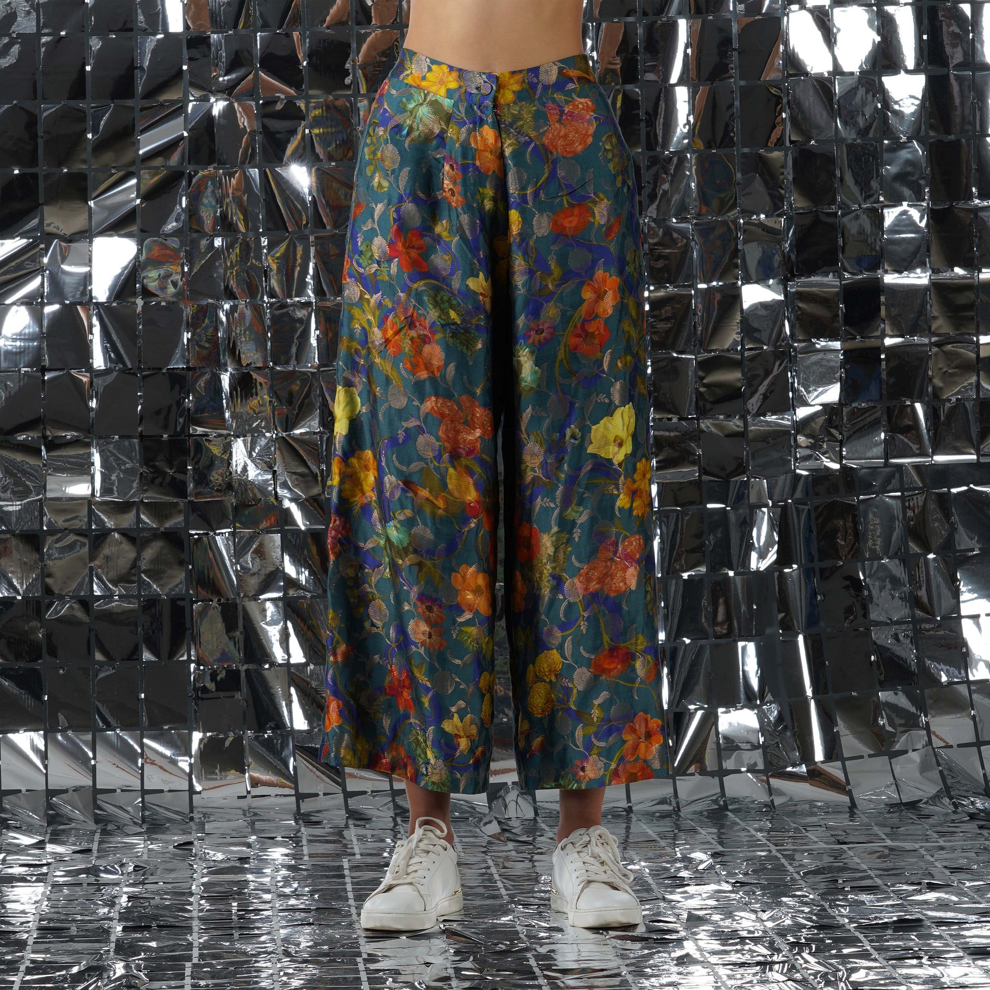 The Emerald cotton tissue pants are effortless and versatile. These wide-leg pants will fit you like a glove and are the perfect accompiant to the emerald angrakha dress.
