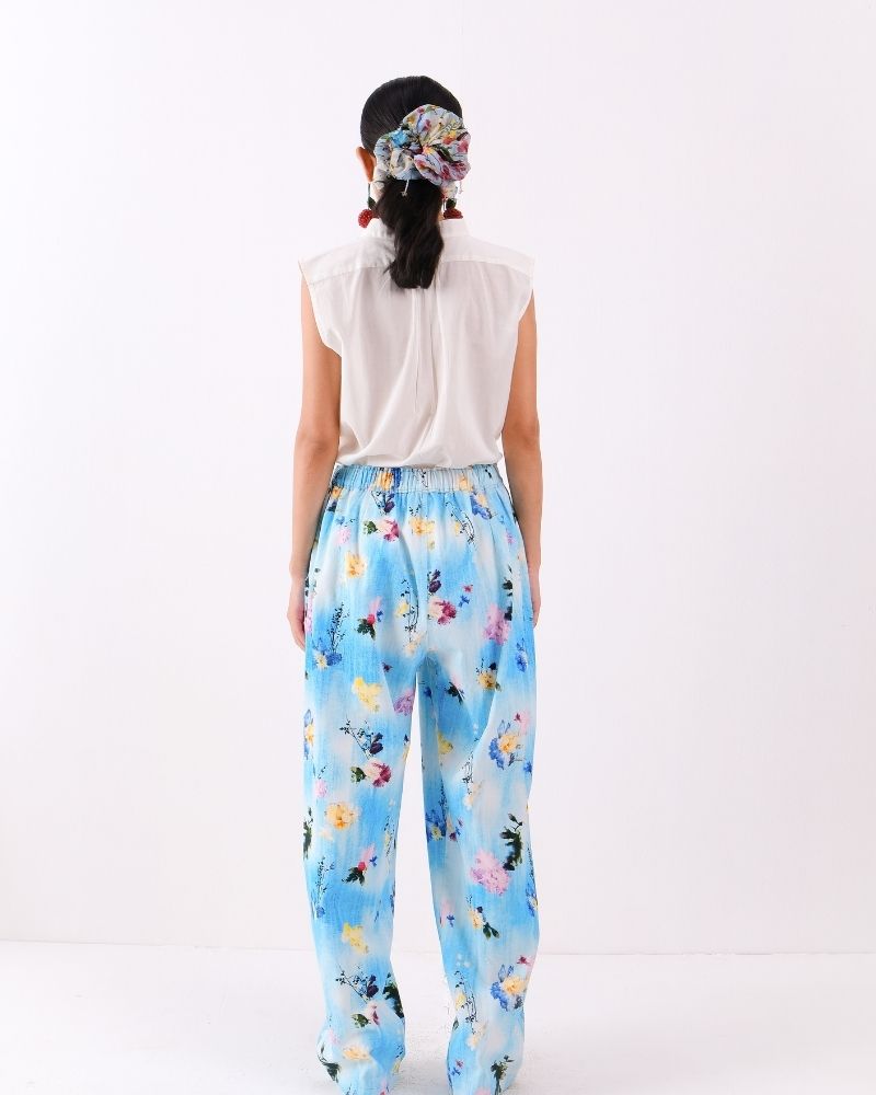Bouquet Story pant with elasticated waist and side pockets in Denim.
