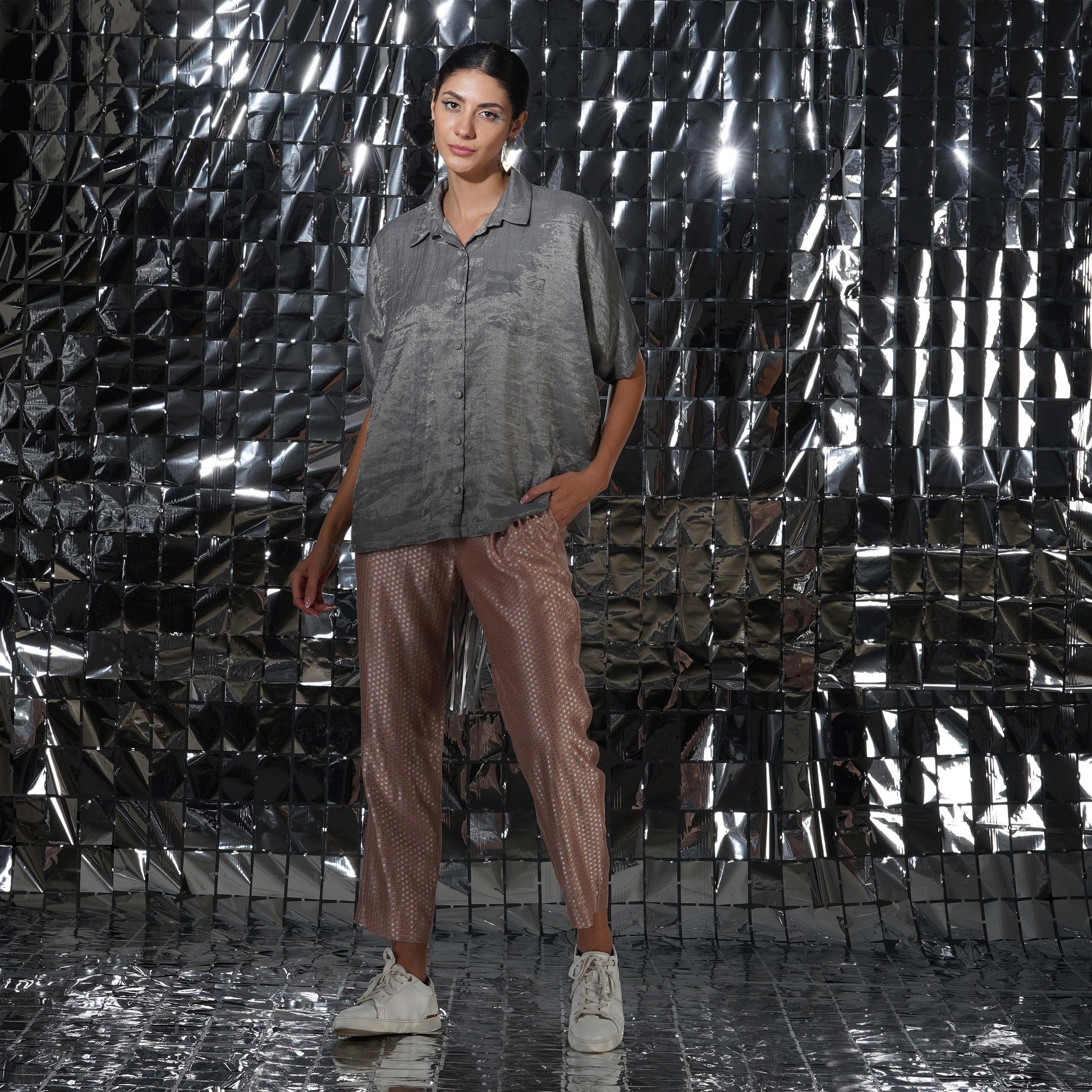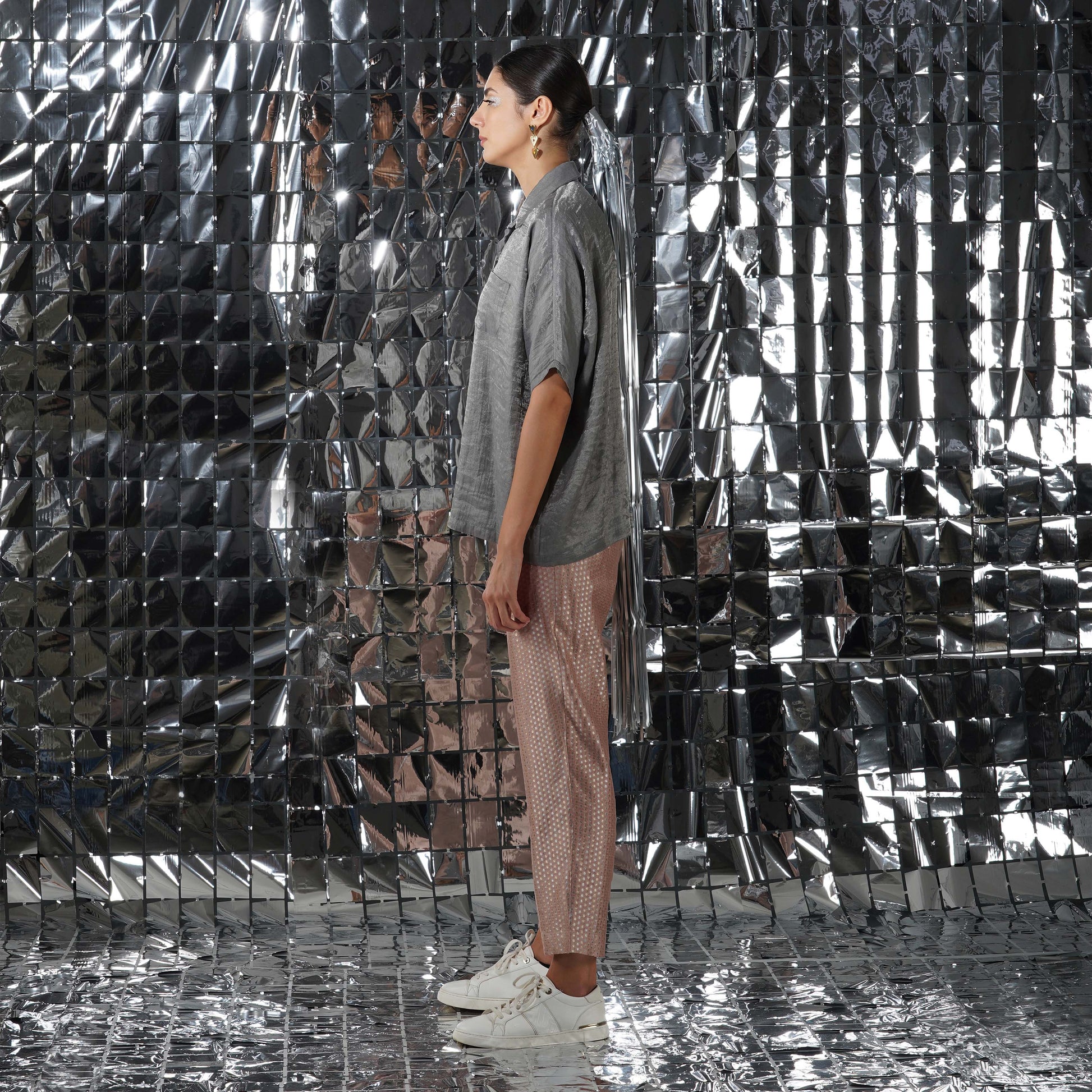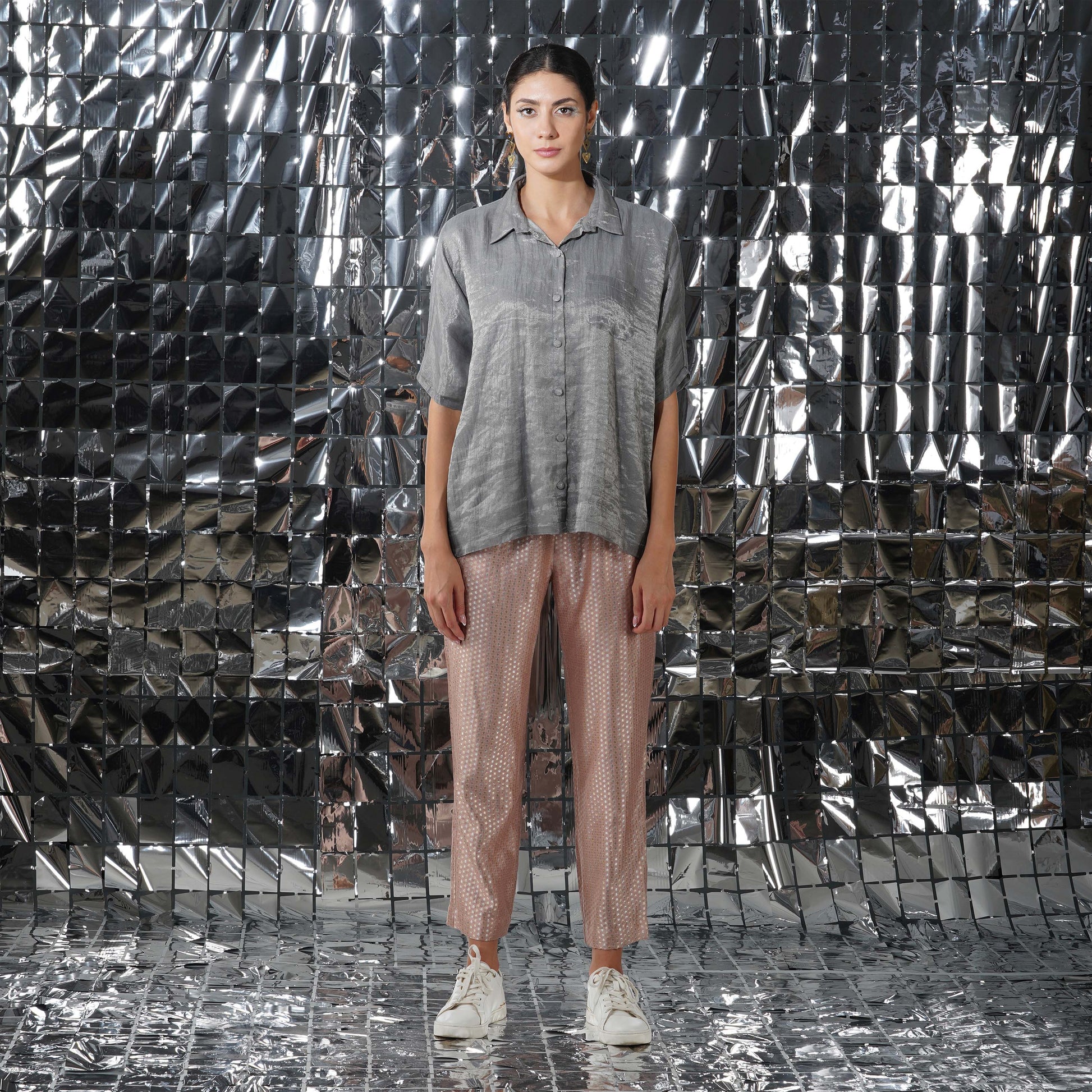 Creating a balance of textures and print, our gaia silver cotton tissue top would elevate your ensemble together, complimenting the luxurious and rich gaia co-ord set.