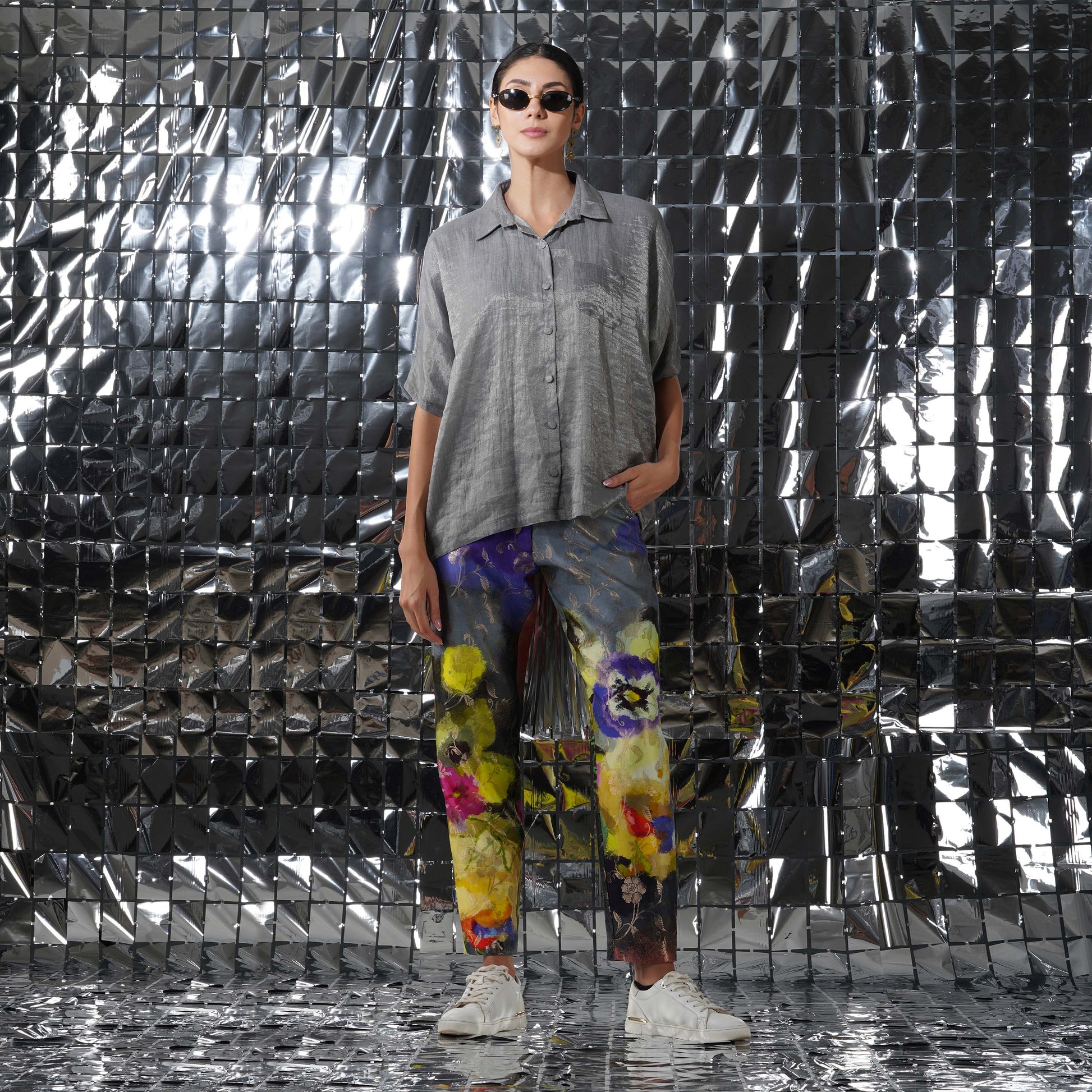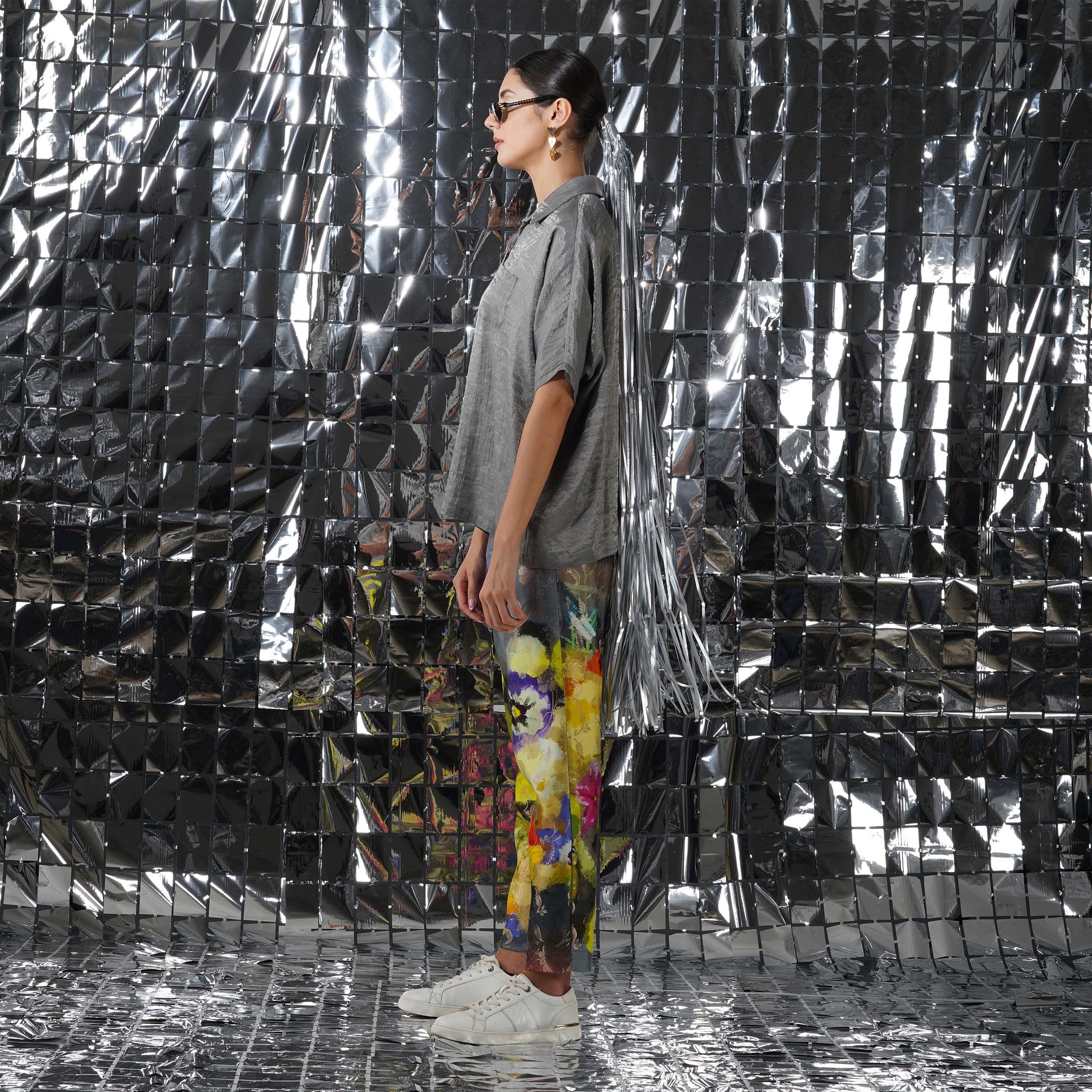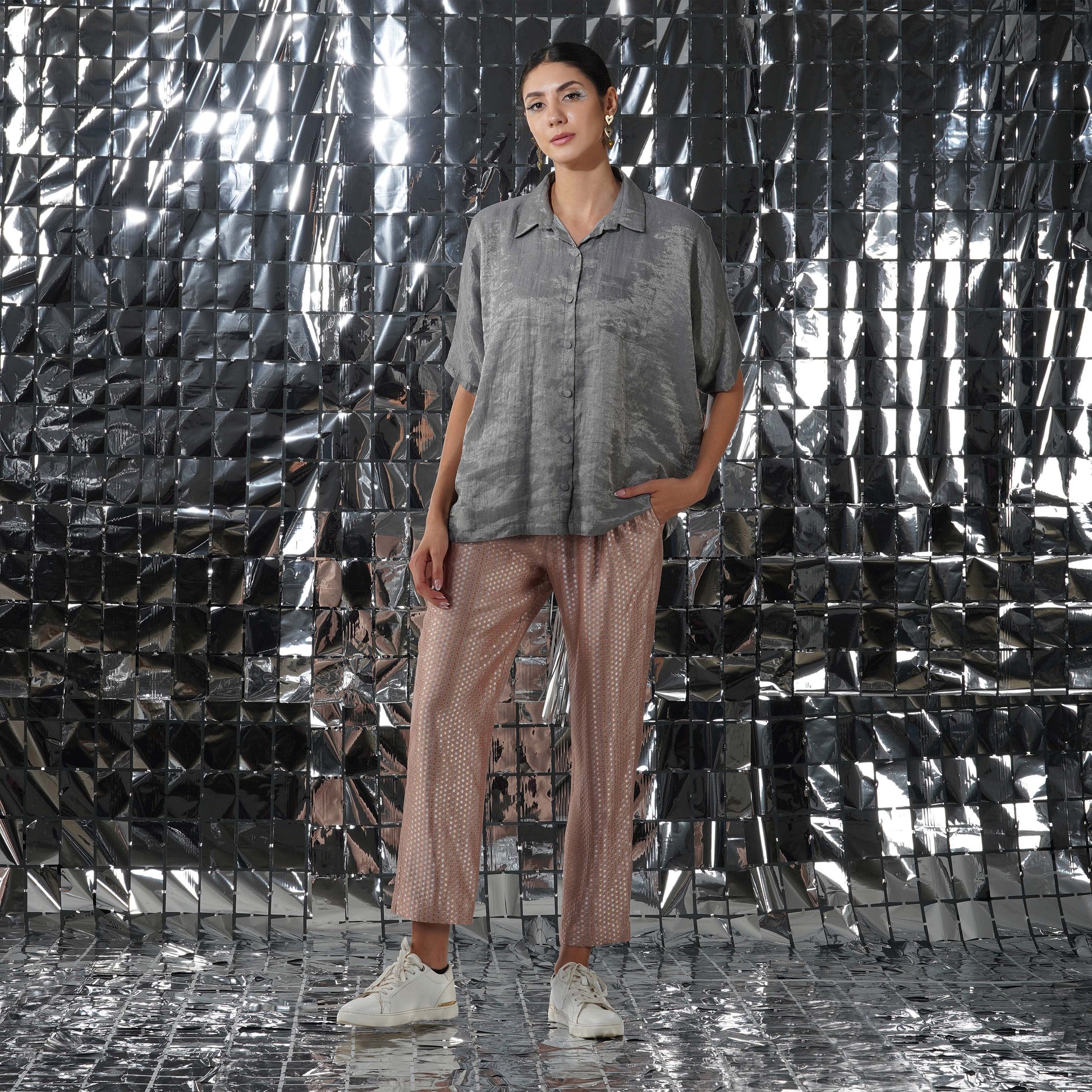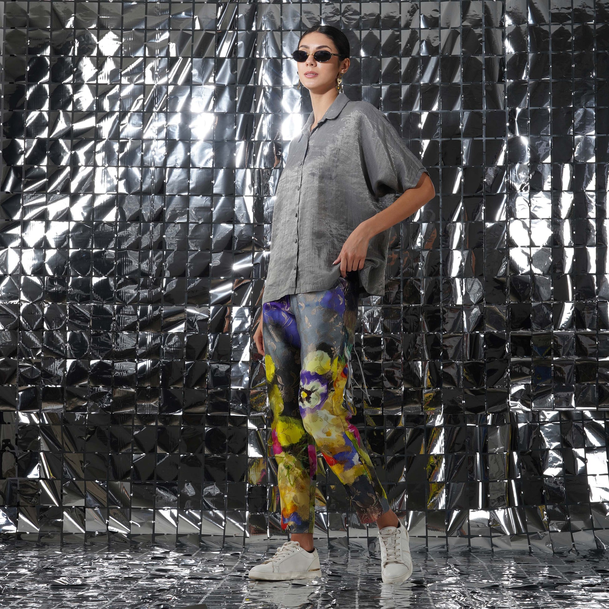 Creating a balance of textures and print, our gaia silver cotton tissue top would elevate your ensemble together, complimenting the luxurious and rich gaia co-ord set.
