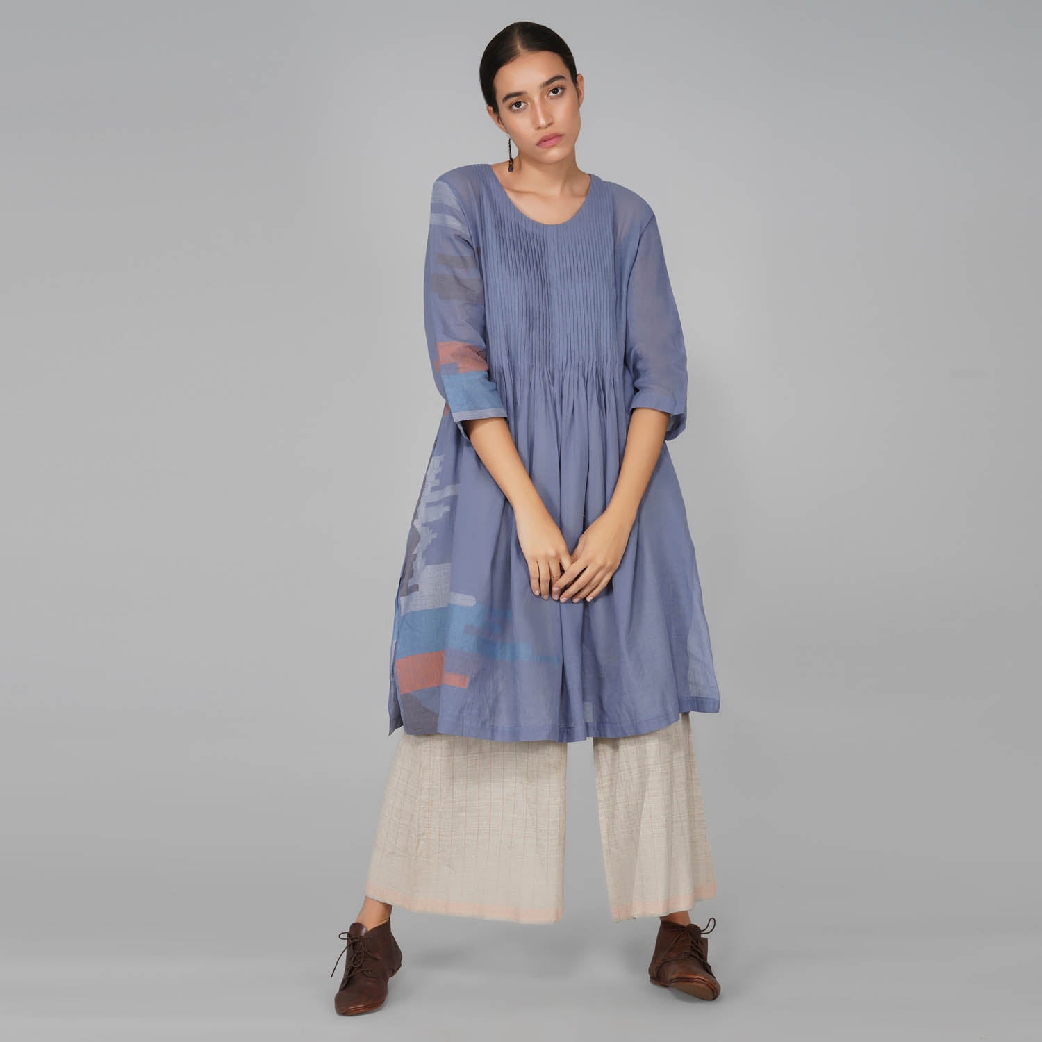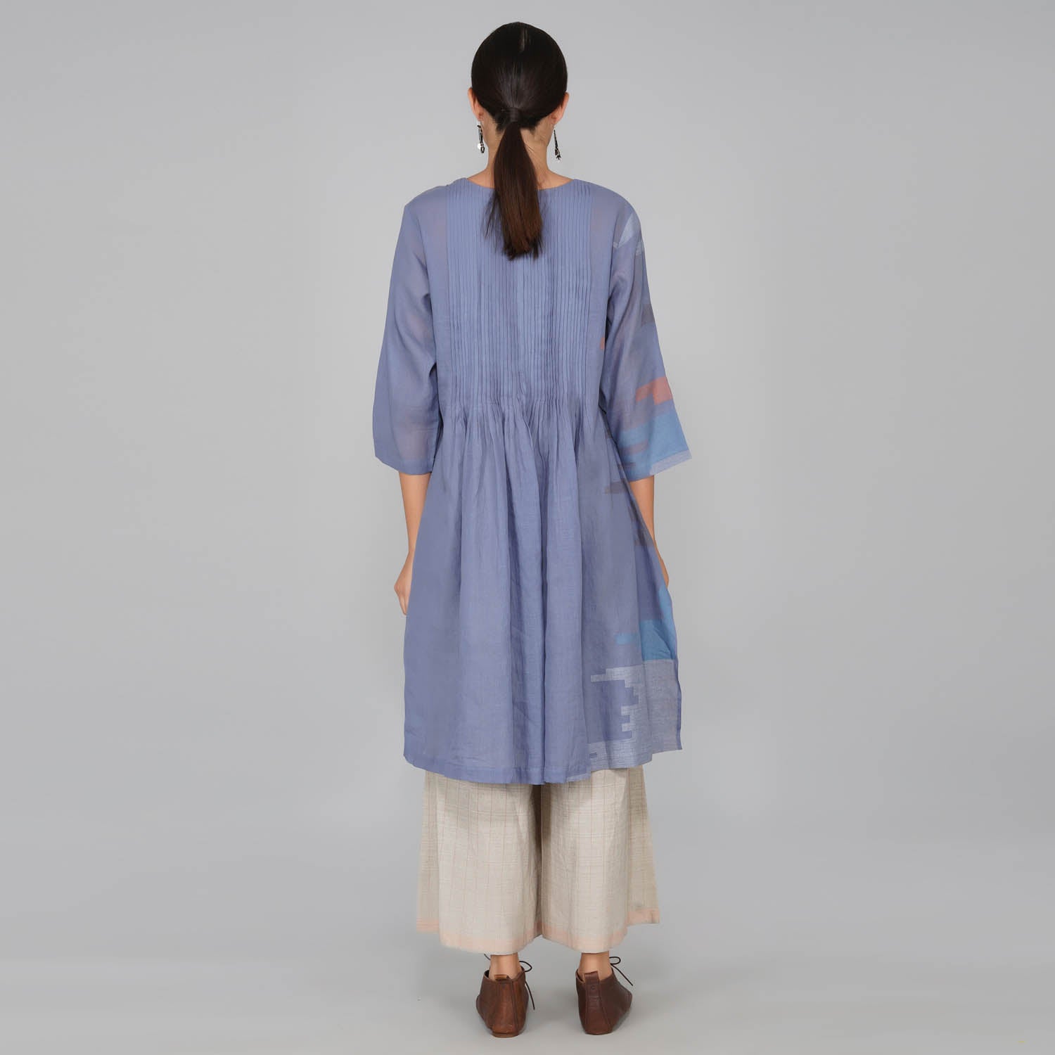 - Cotton jamdani top with gethering detail at neckline and sleeves