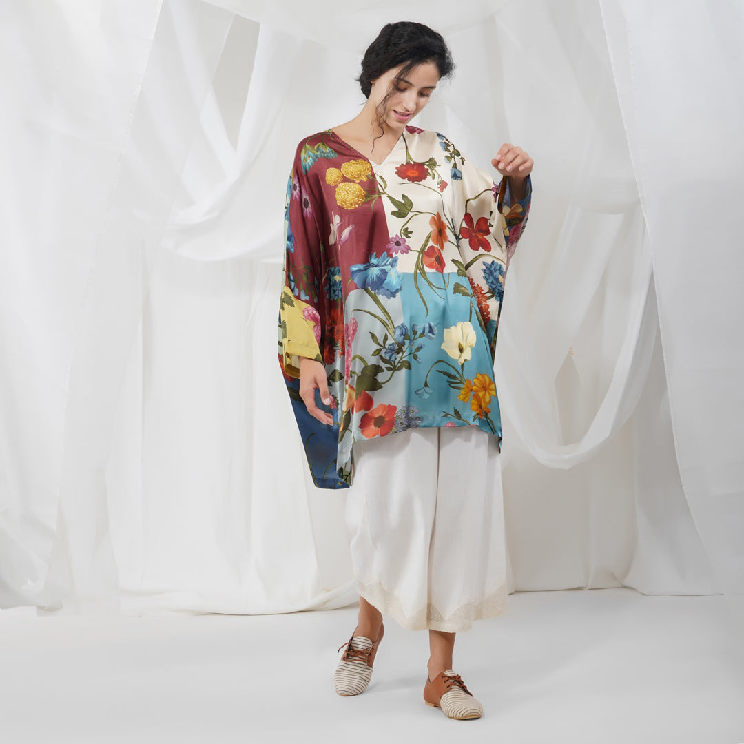 A vibrant floral printed v-neck top, the elegant Iro Top is alive with the spirit of springtime.