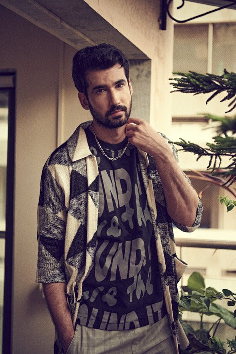 One thread embroidery jacket done with black and white coloured threads without a base fabric giving it a unique look by creating its own fabric