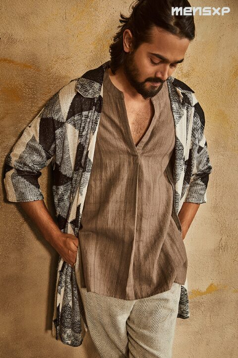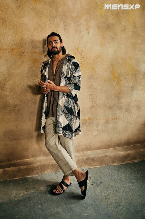 One thread embroidery jacket done with black and white coloured threads without a base fabric giving it a unique look