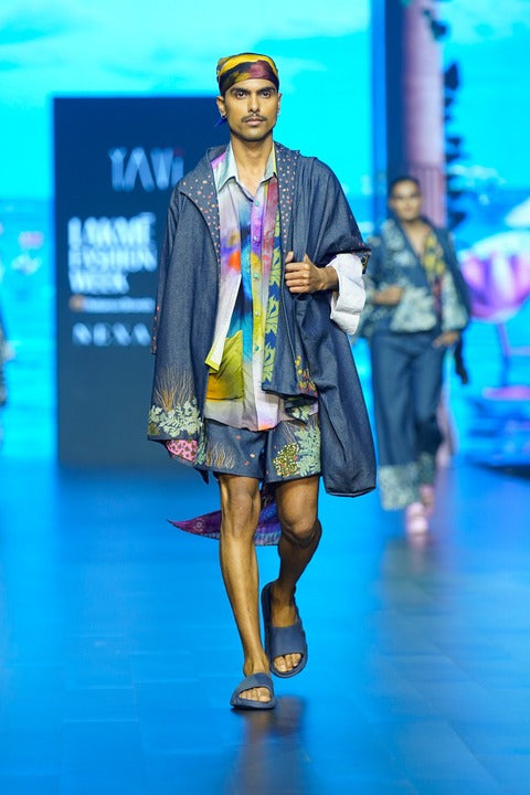 Patchwork embroidery on denim jacket in the bottom as a placement inspired from the vintage story