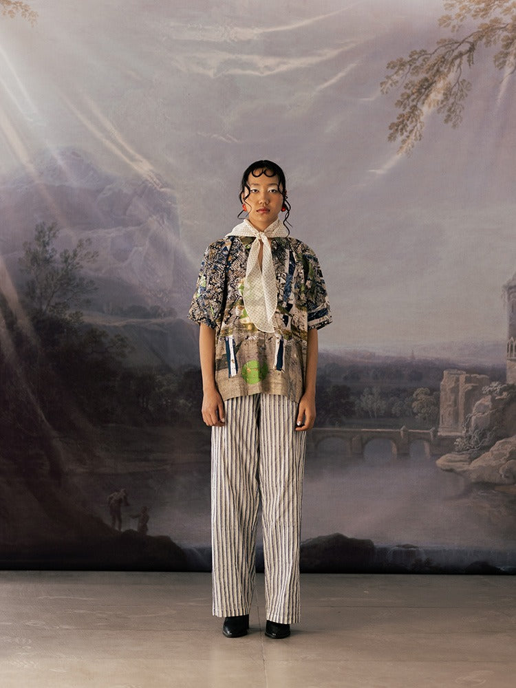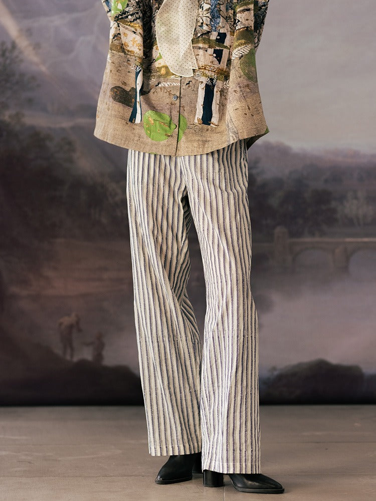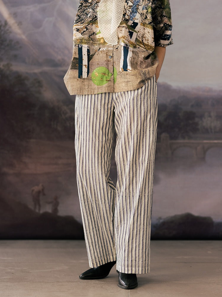 Our Shadow Striped Cotton Pants, a versatile addition to your wardrobe from our White on White Story. Crafted in 100% cotton, these pants feature pockets on both sides and an elasticated waist for comfort and style.