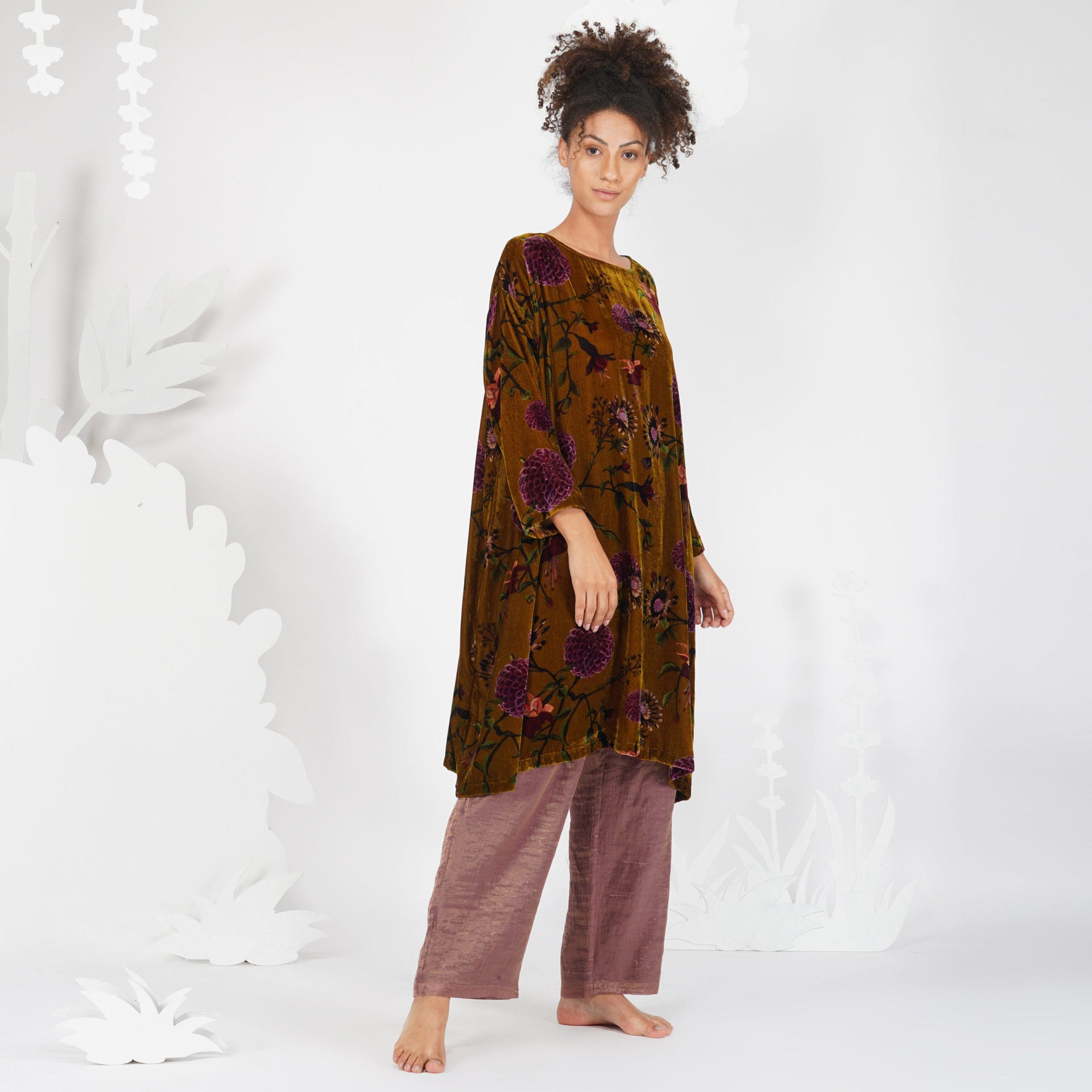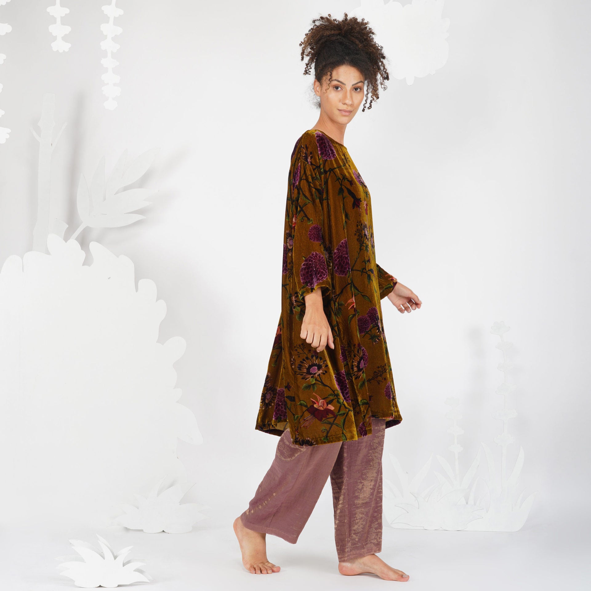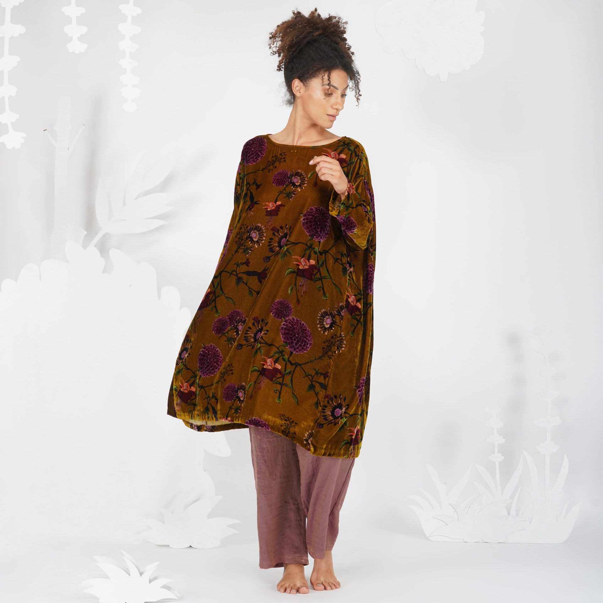 - Floral printed velvet dress.