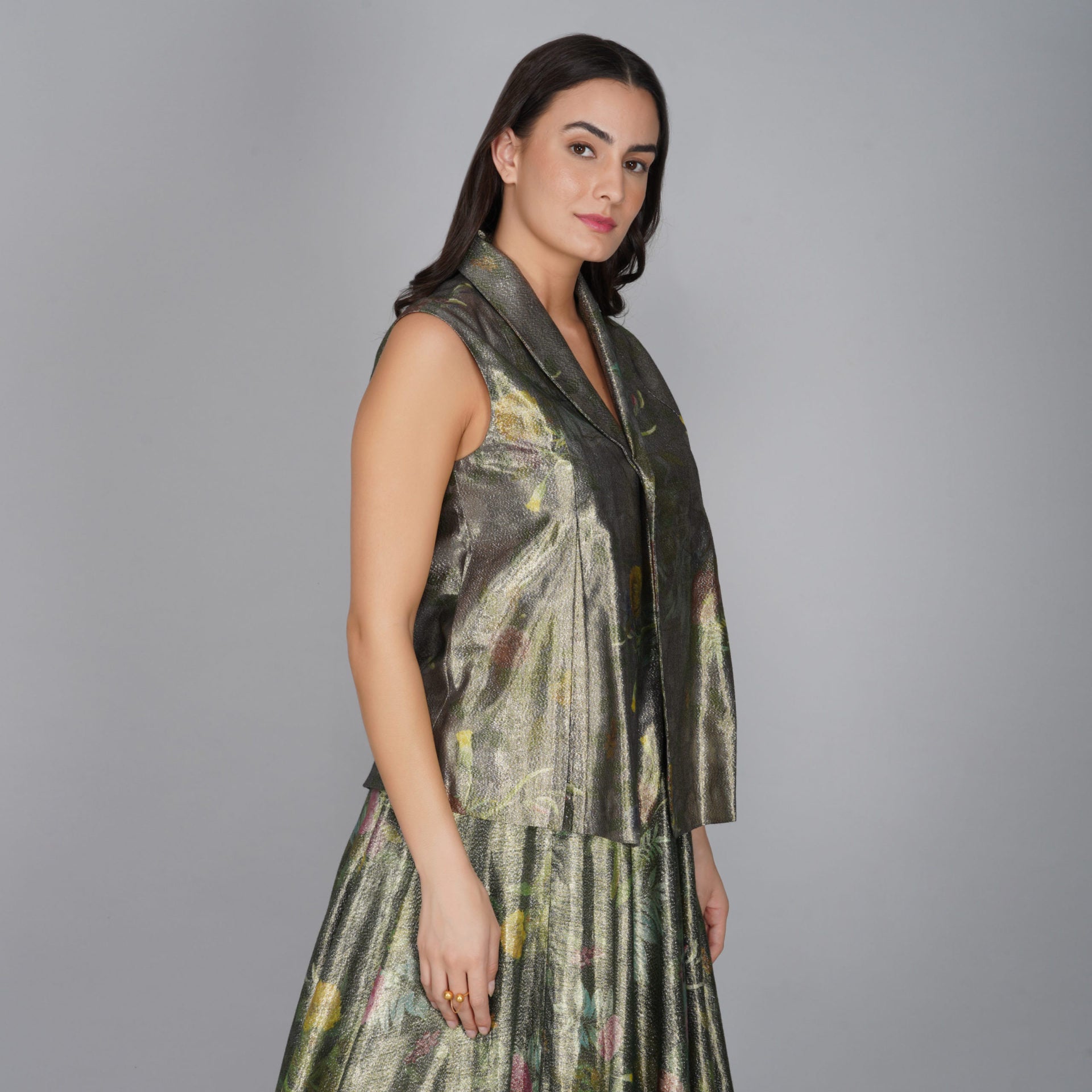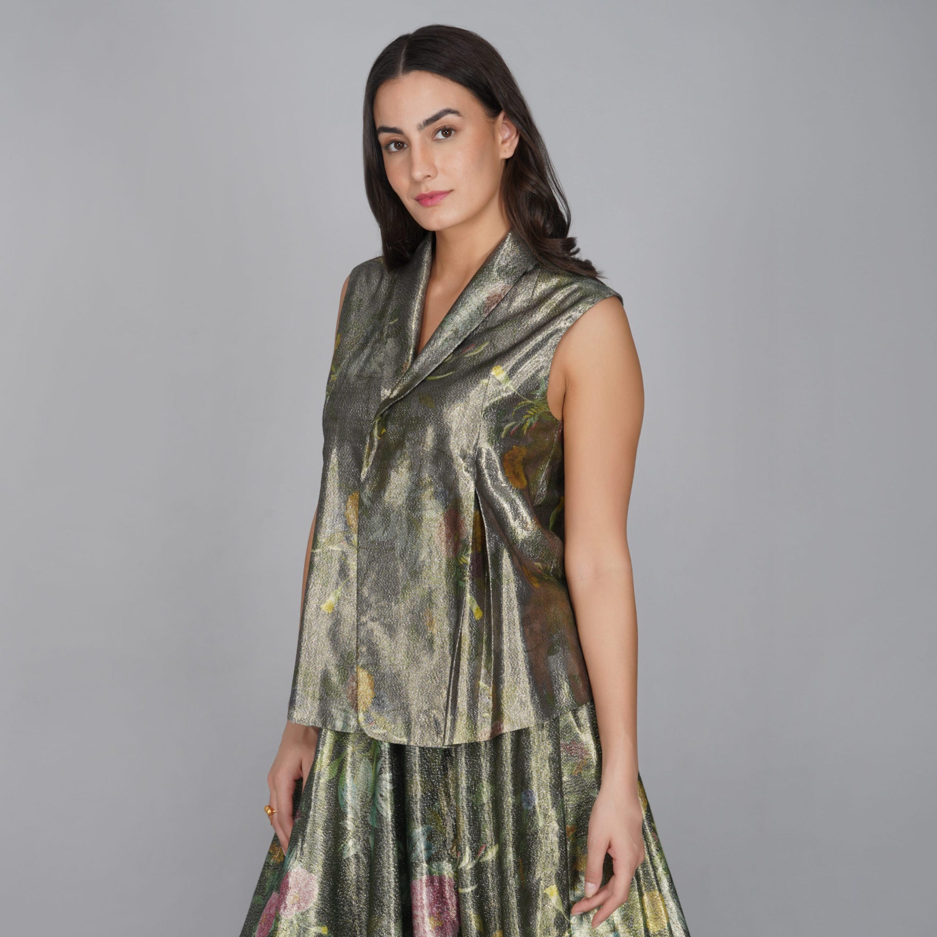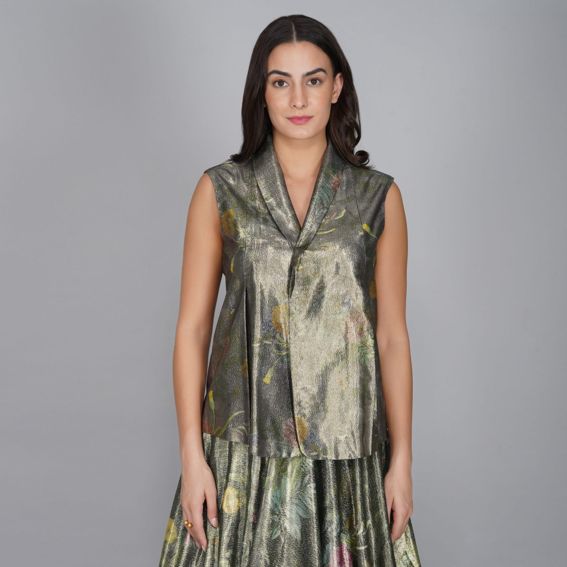 - Floral lurex waistcoat.