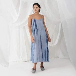 Elegant and effortless, the Mizu button down dress combines the traditional techniques of shibori and jamdhani in a an easy contemporised manner. Pin tuck details add movement and ease. Seen here with the Vara Slip dress, the Mizu Dress can also be paired with pants, or worn unbuttoned as an overlay.