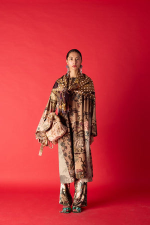 The Surface is covered in a complex, Vintage story -style print. Jacket is sold as saparate.