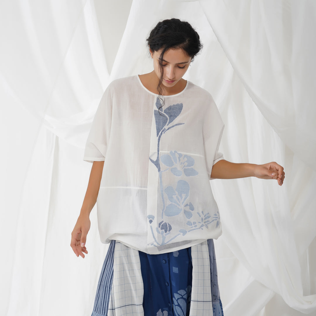 Light and effortless; inspired by Ikebana floral arrangement; the Ori jamdani kimono top is a relentless embodiment of the spirit of spring designed to provide ease and comfort throughout the summer.