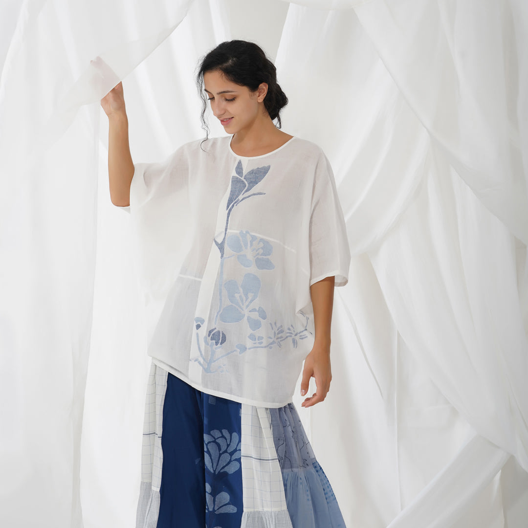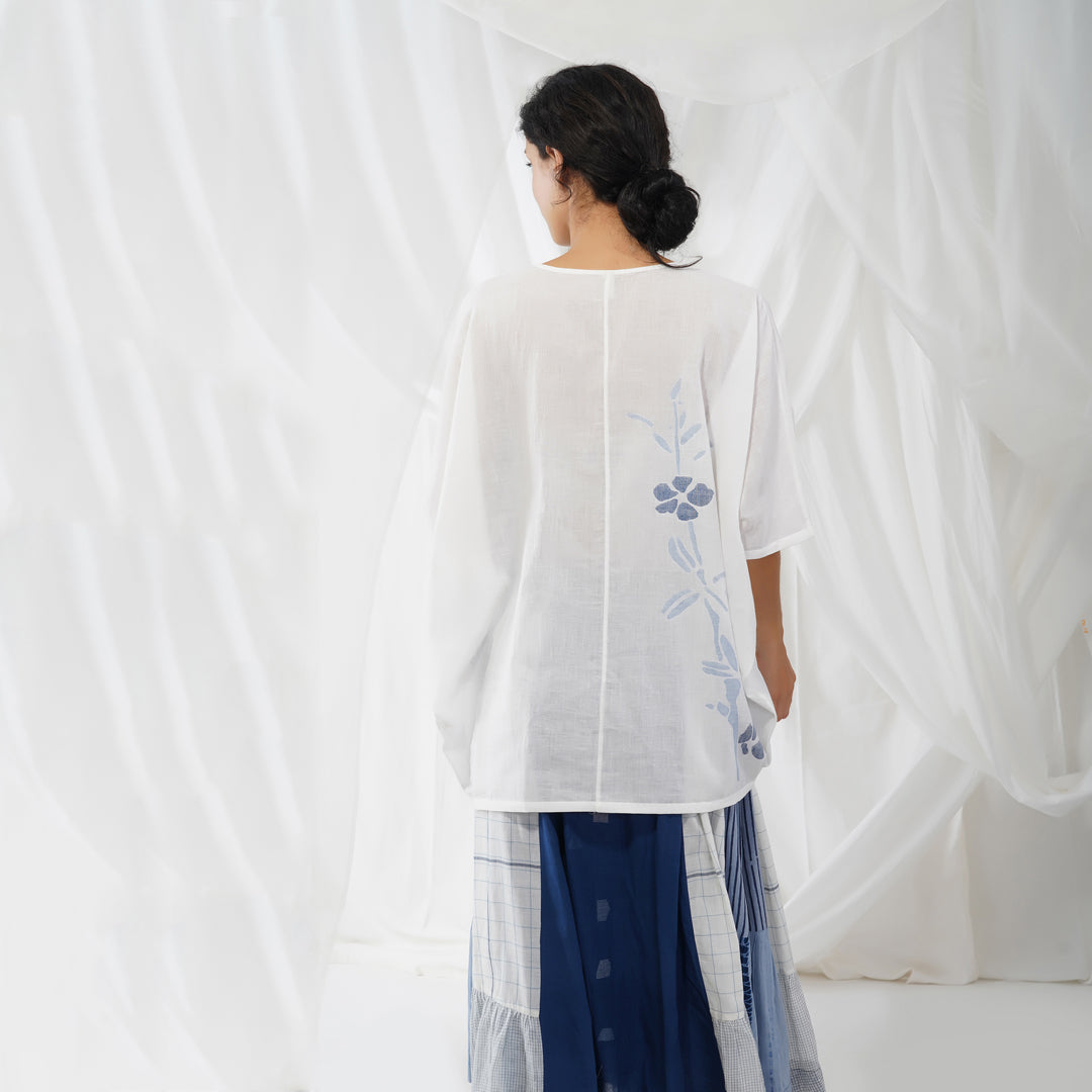 - White jamdani kimono style top.