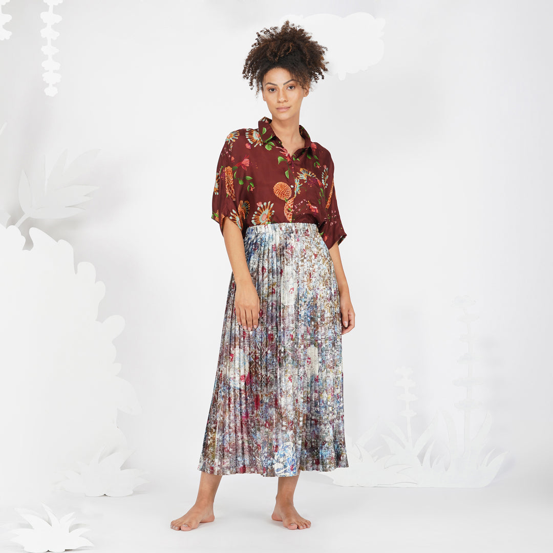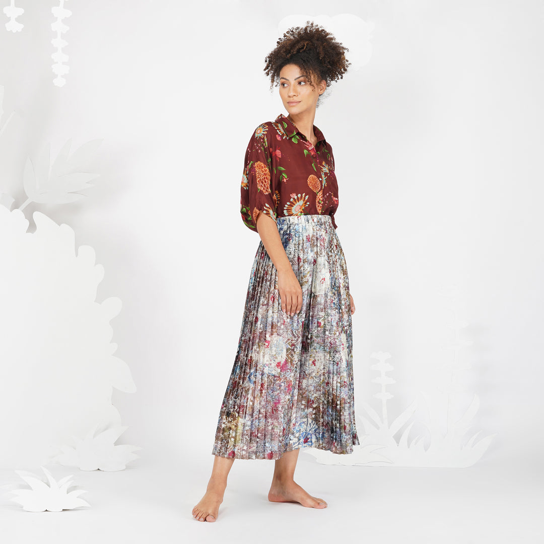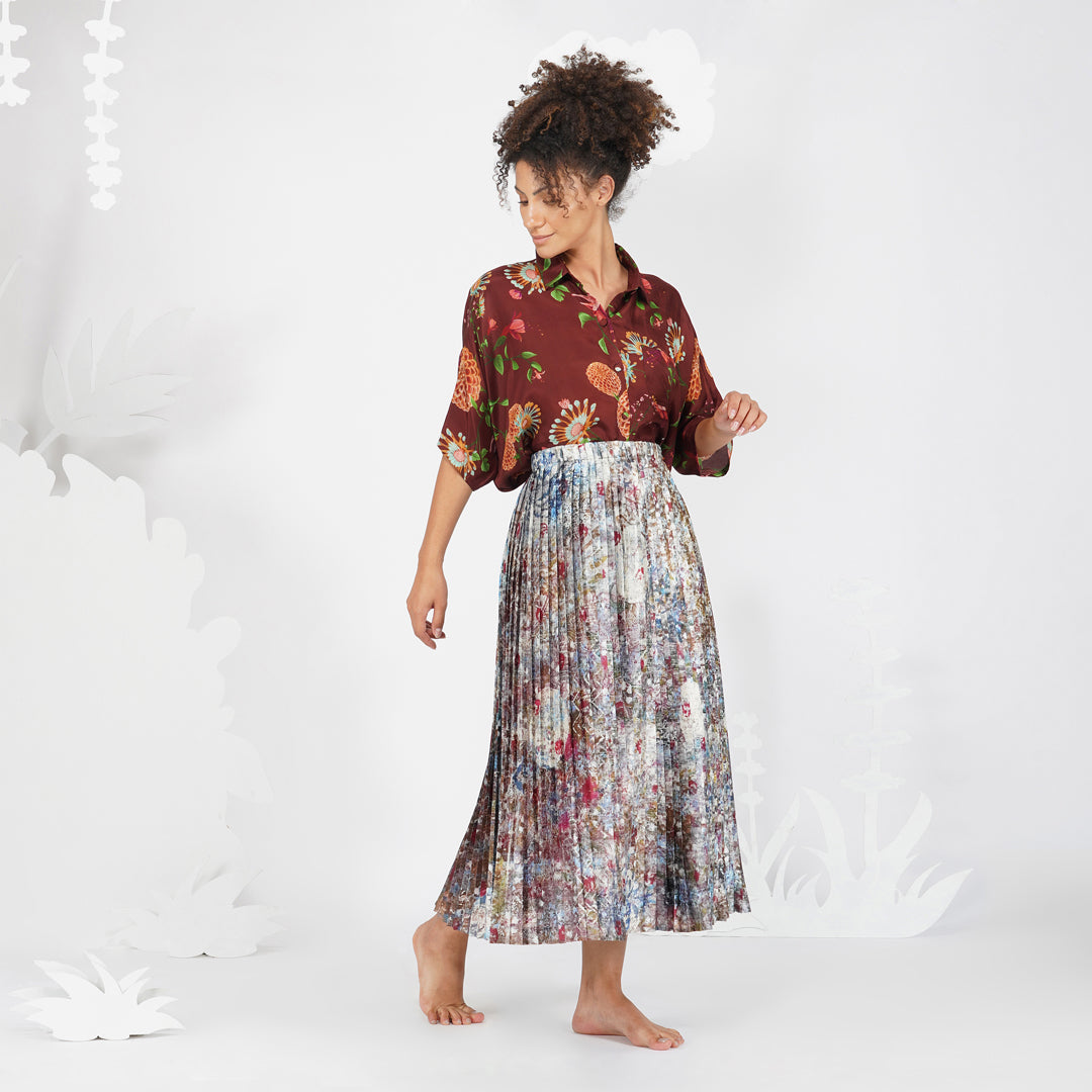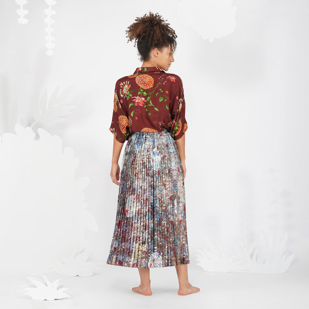 Yavi's contemporary take on florals with hand painted strokes in oil paints, in an autumnal feel. This versatile top can be worn as is on can be paired with our Earthy quilted jacket for a complete look.