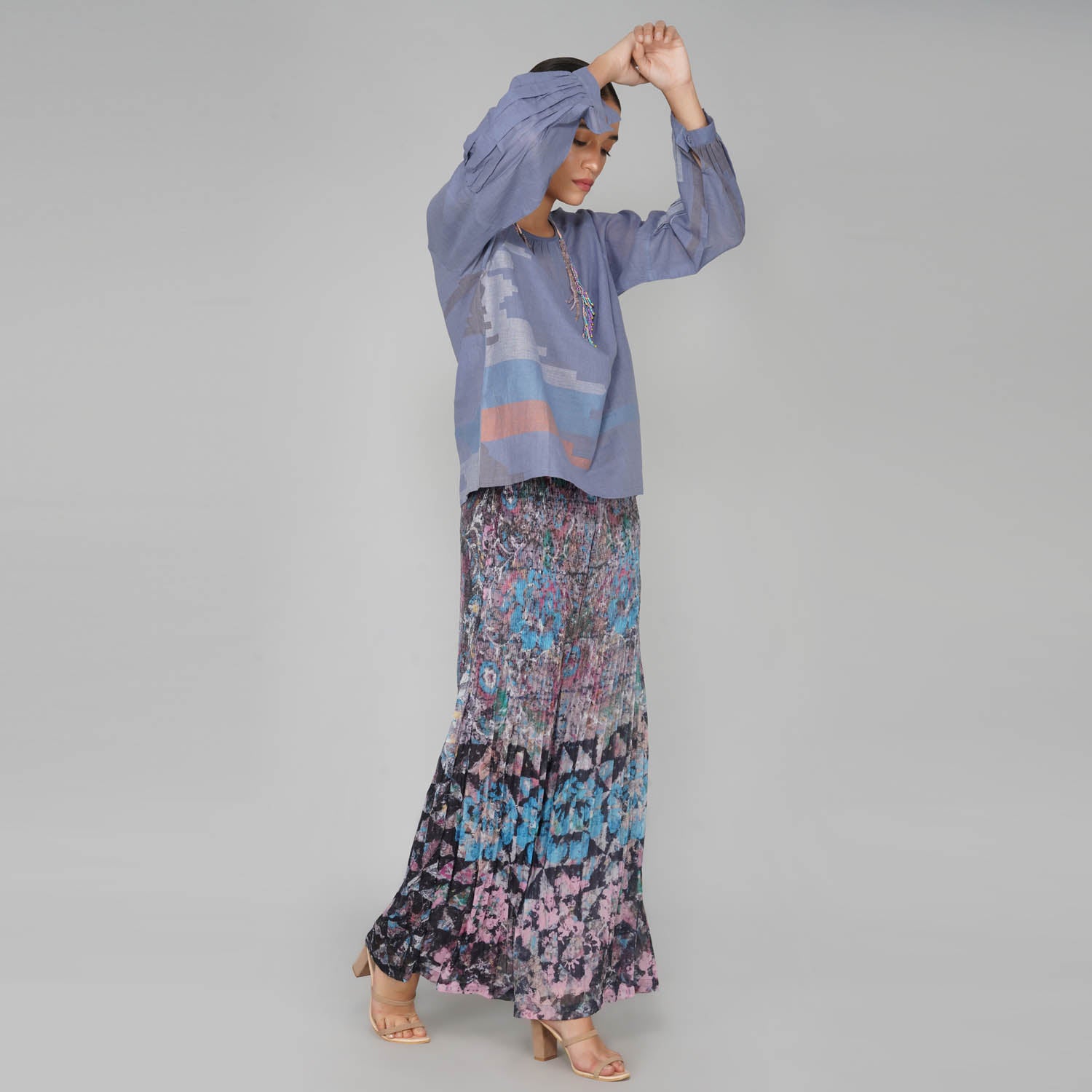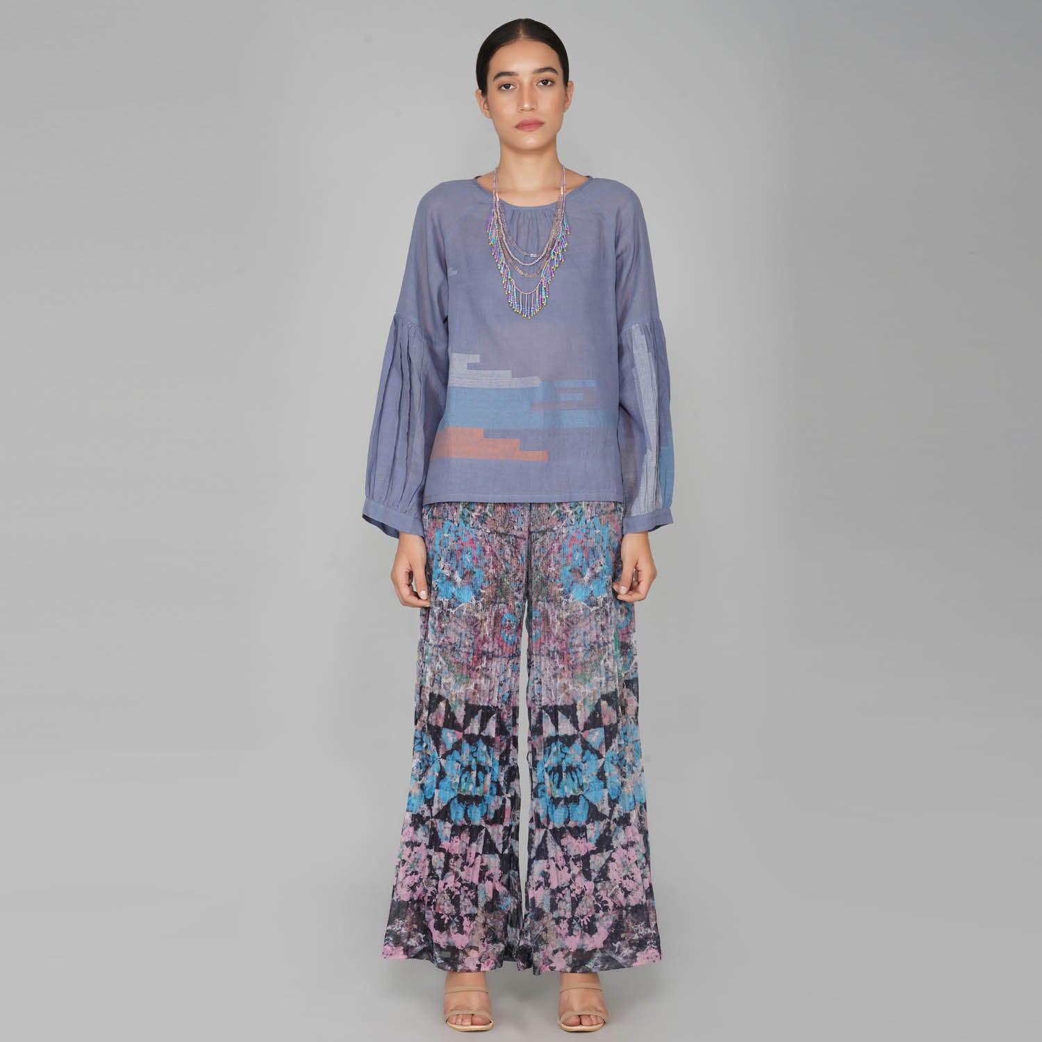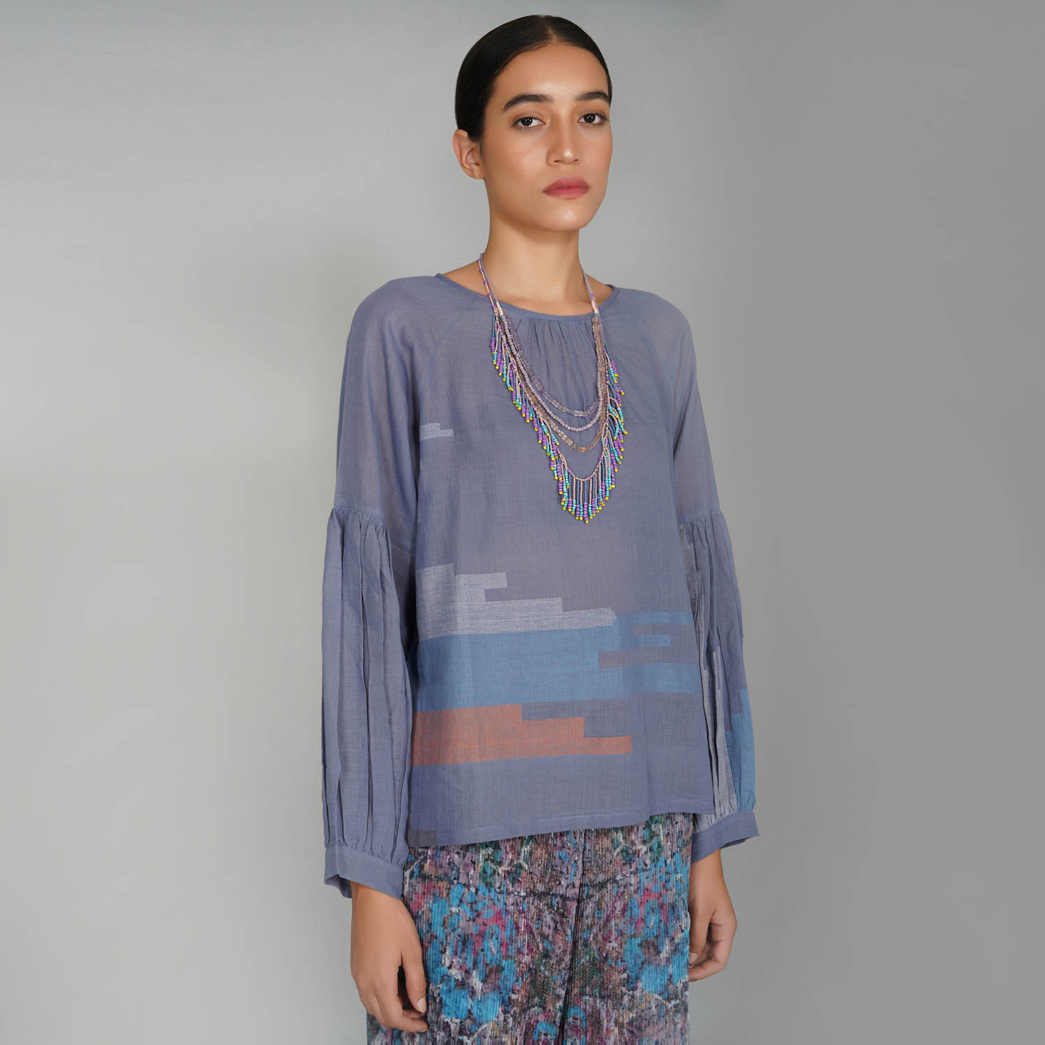 - Cotton jamdani top with gethering detail at neckline and sleeves