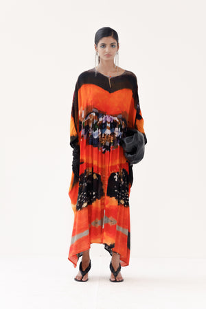Yavi’s signature one thread embroidery Jacket inspired by food art. The jacket is sleeveless and has a shawl collar. Comes with a special wood block printed lining.