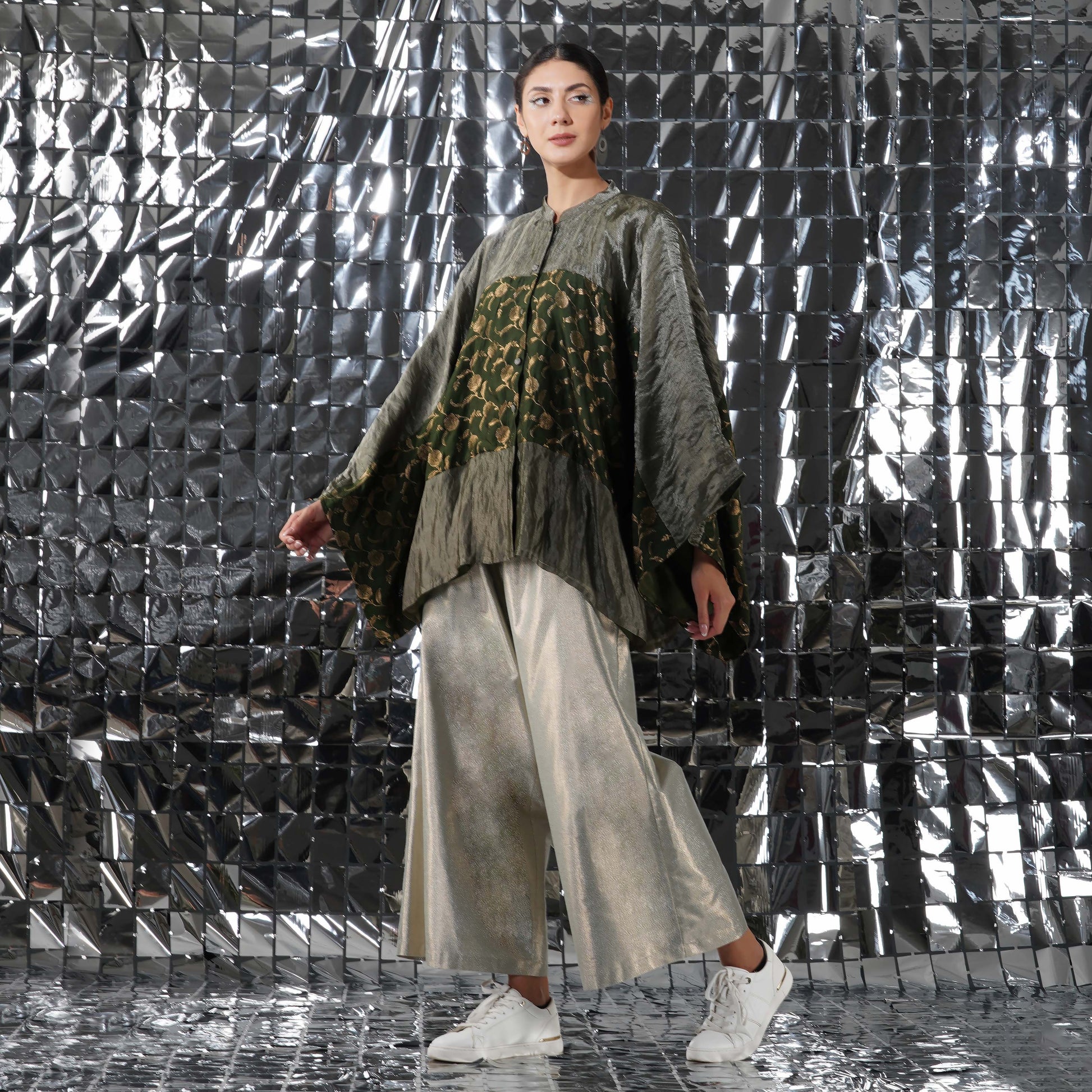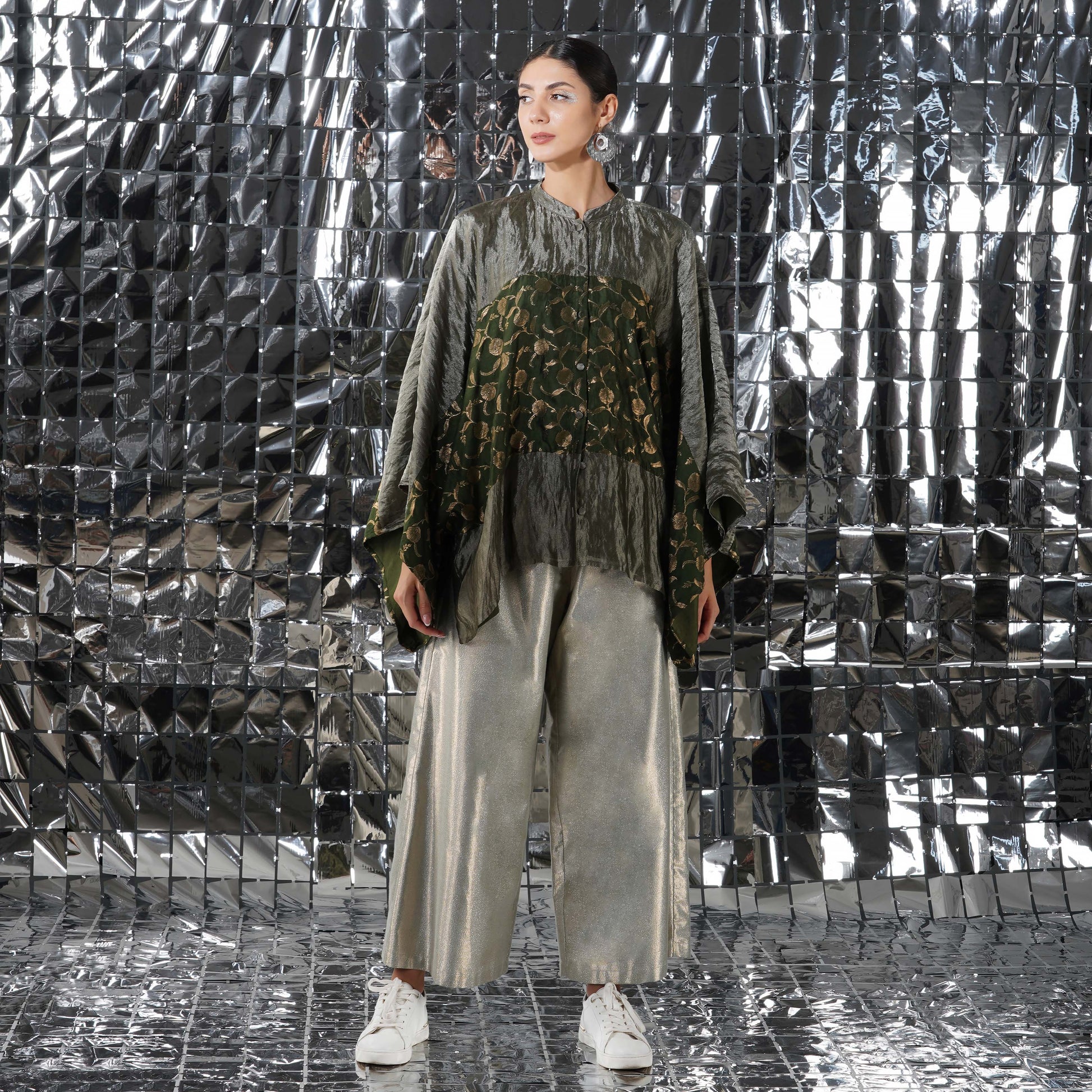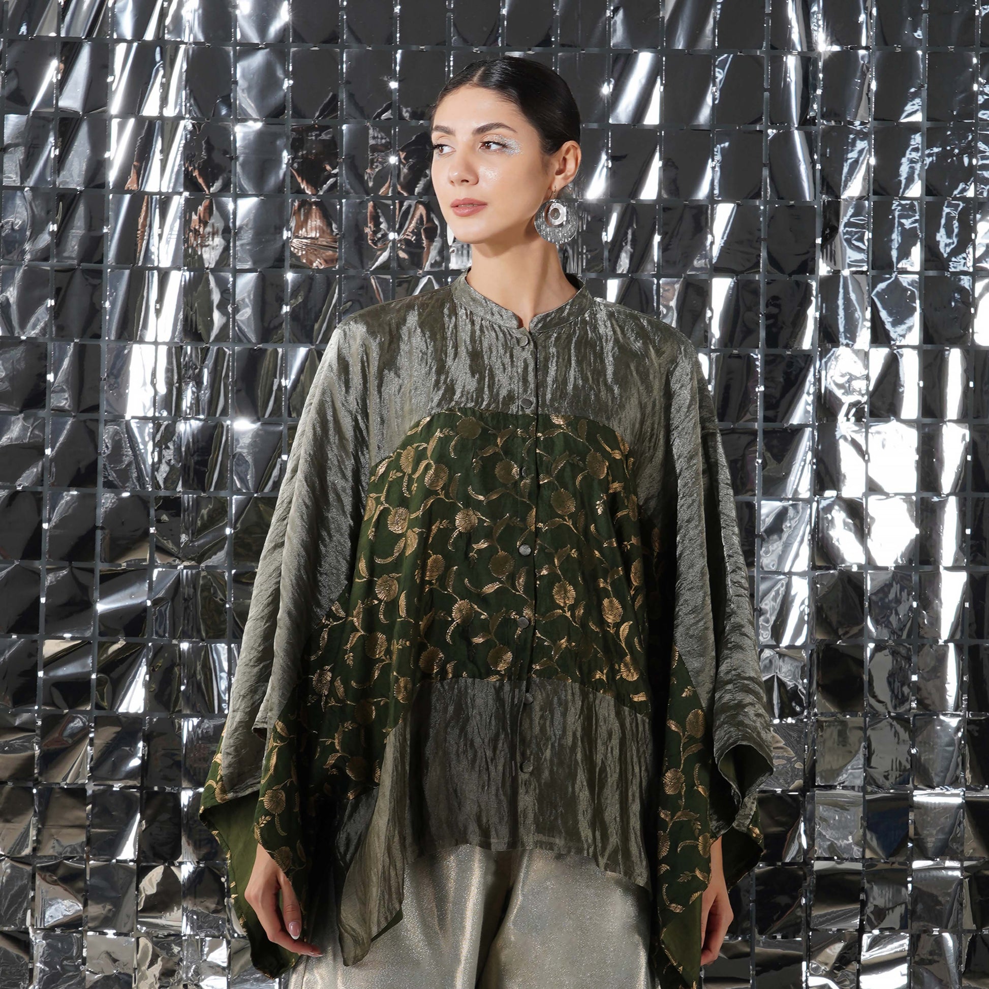 An essential festive top for your wardrobe. The Quinn top is made of an easy effortless silk tissue fabric and to make it, even more, luxe, it features accents of brocade.