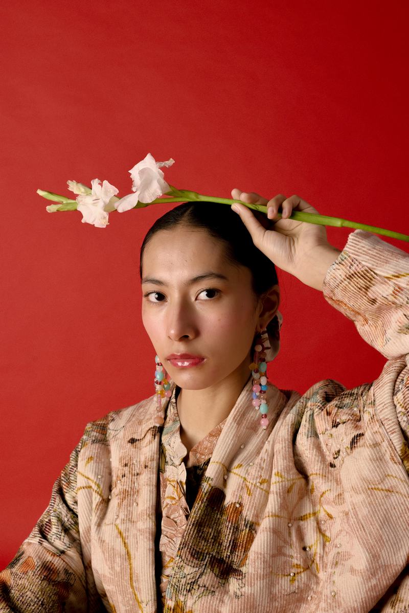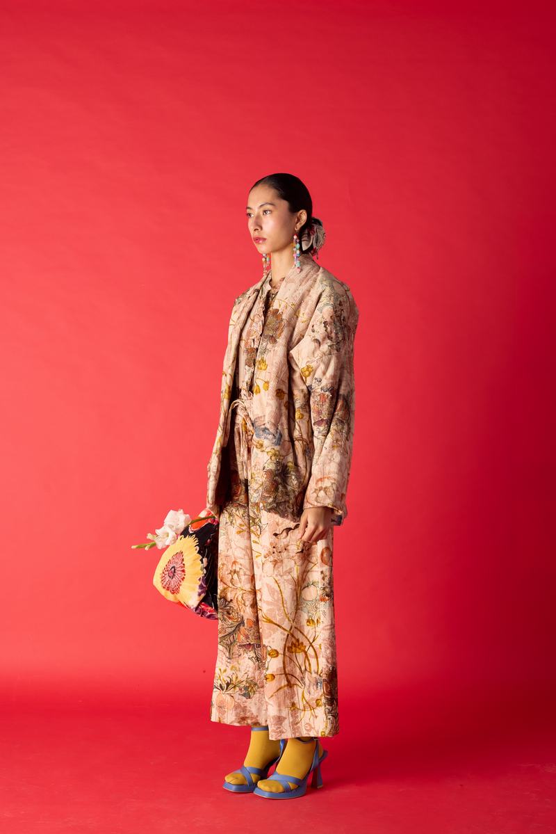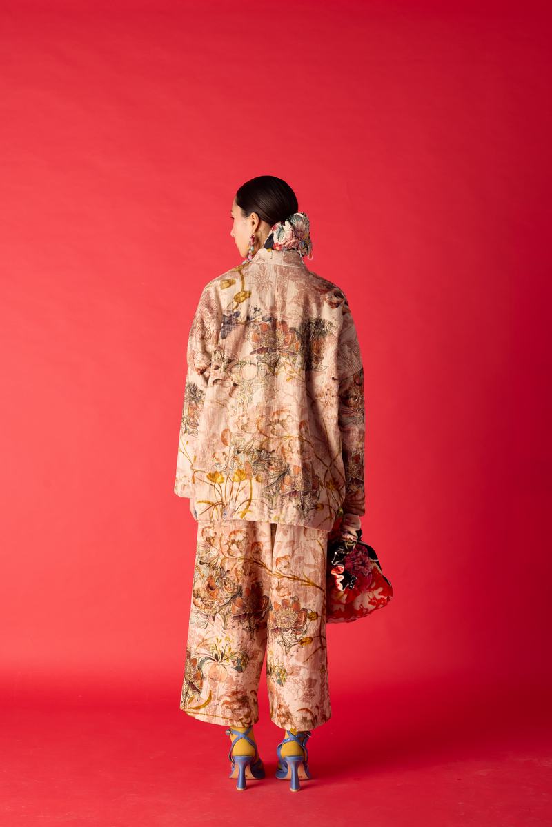 This short boxy jacket and the silhouette is open-front and collarless, designed as a relaxed.