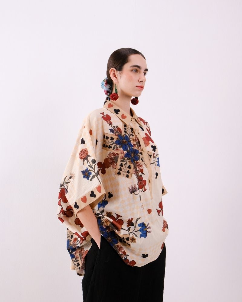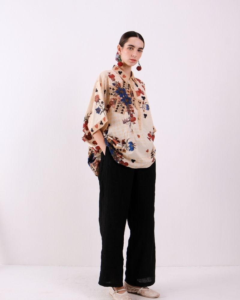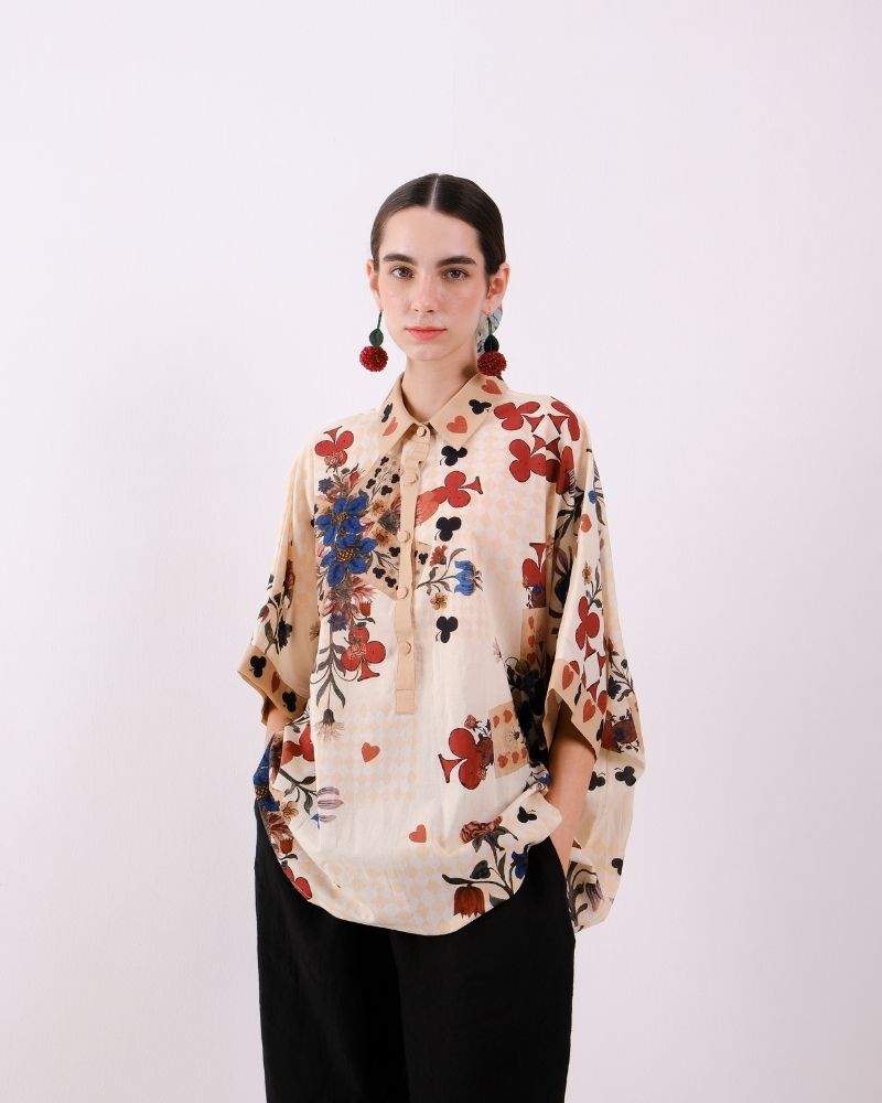Carrelage Du Marais engineered collared shirt in Cotton voile.
