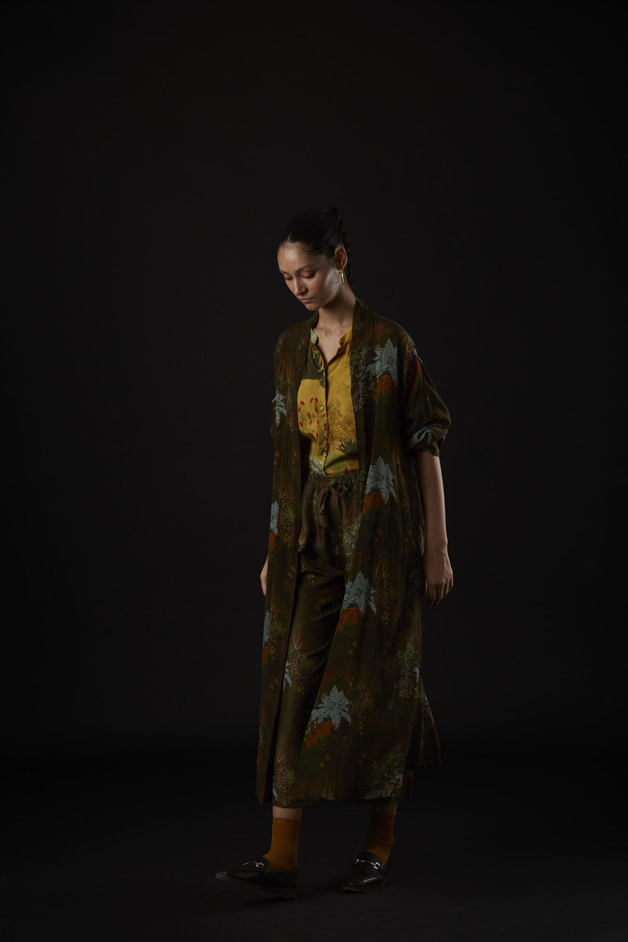 The lush foliage floats on the light and airy umber jacket, ideal to pair with any of your summer outfits.