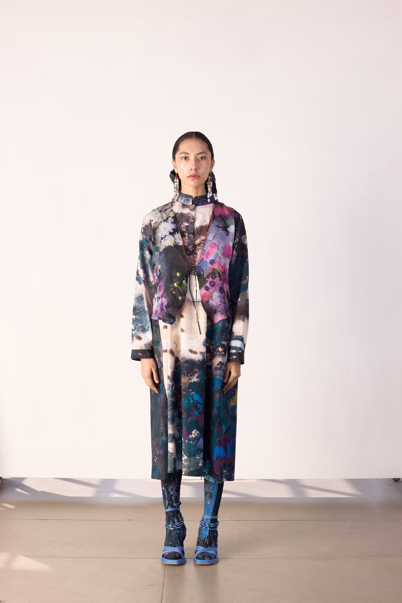 This Short vestcoat deep V-neck and a subtle tie-front closure at the bottom relaxed and easy fit.