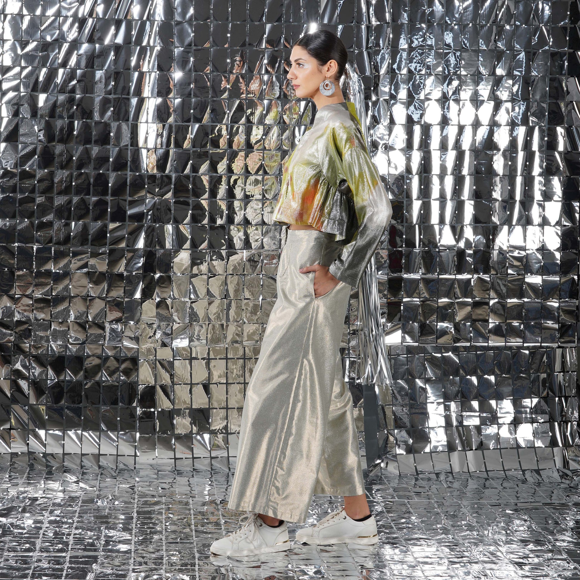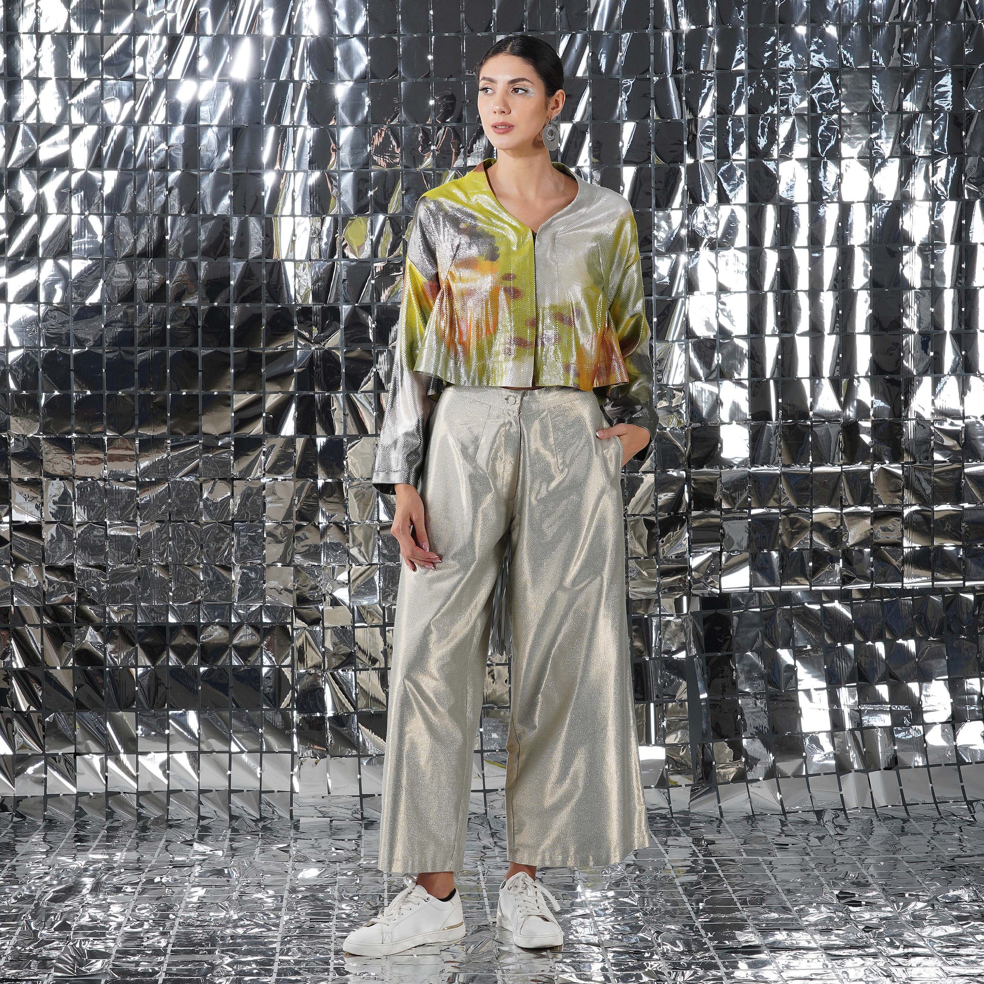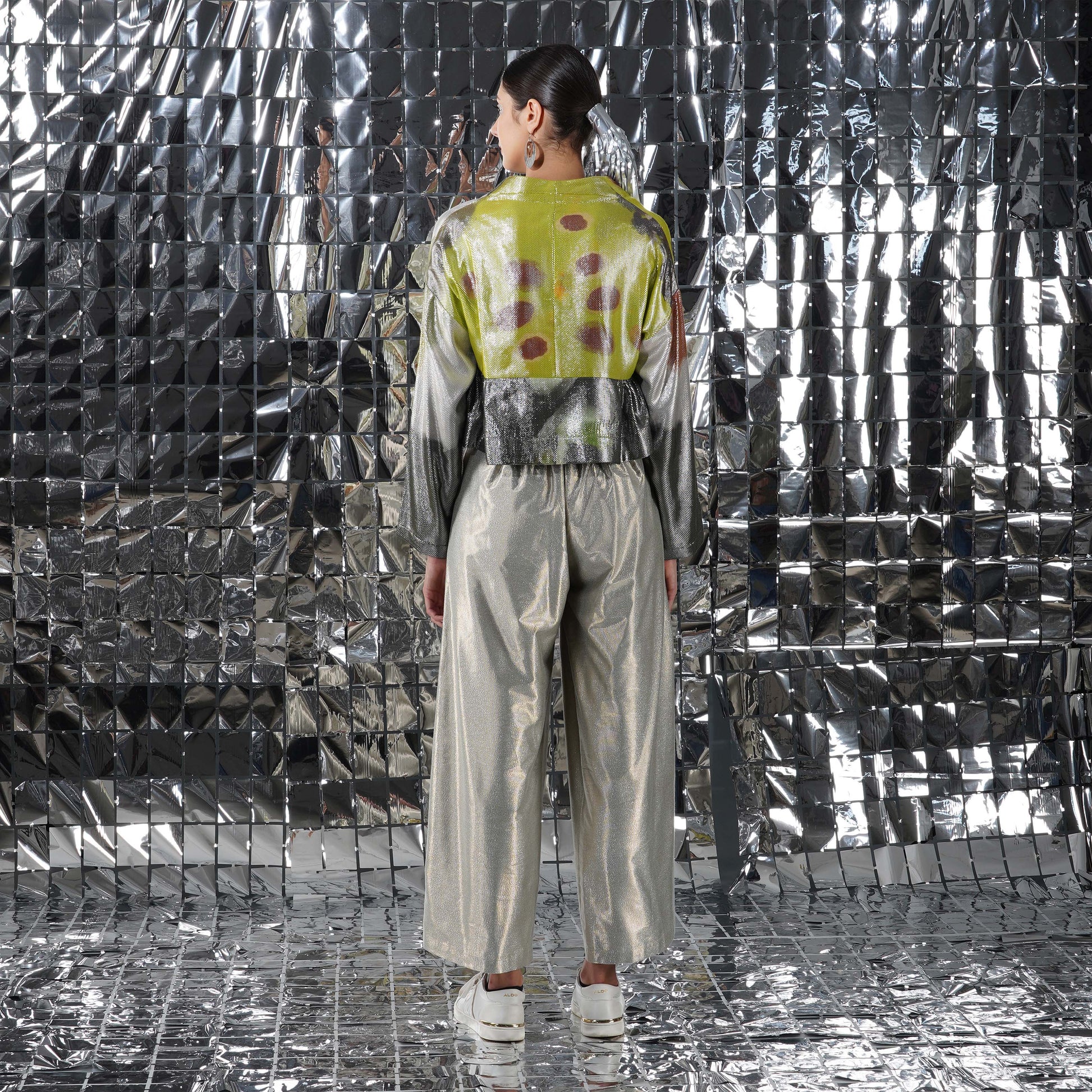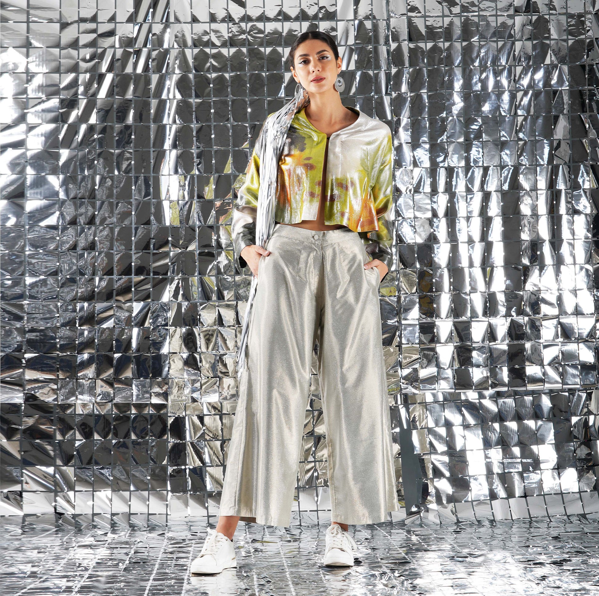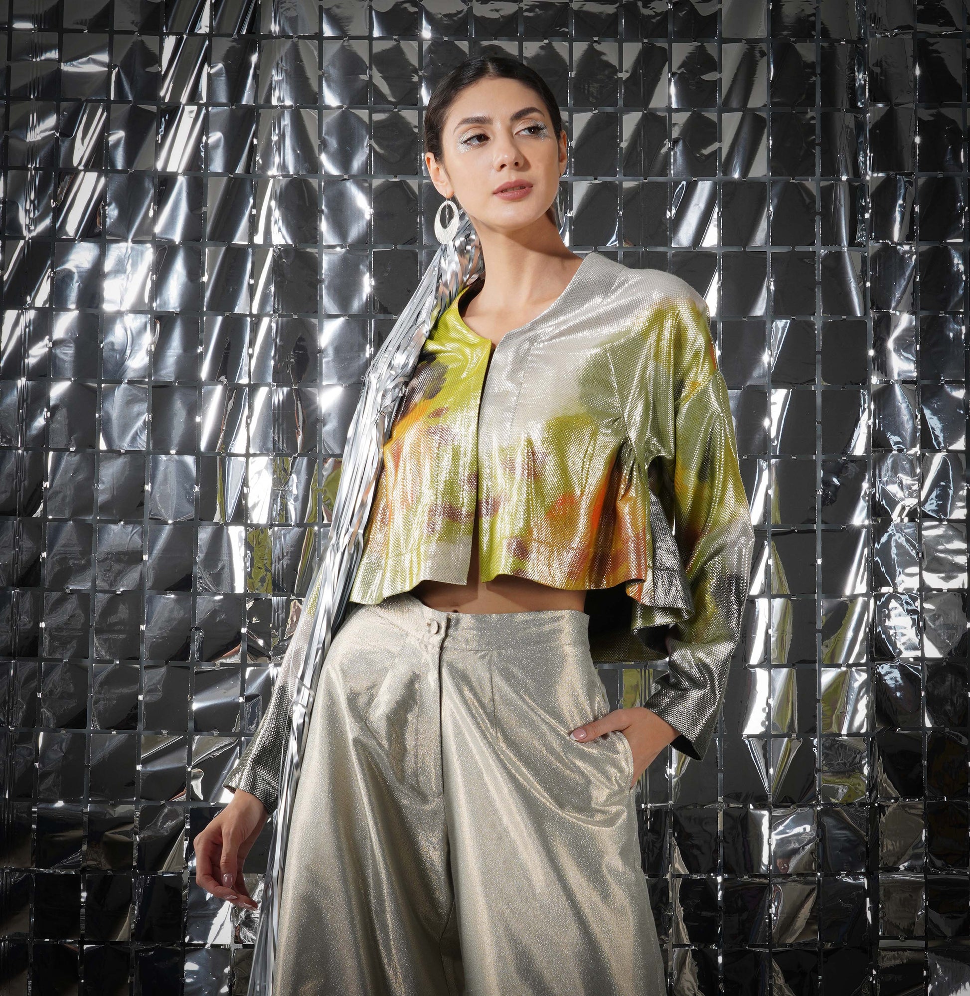A contemporary, elegant party essentials and modern-festive piece in rich textiles. The sundance jacket in our signature print, dancing in lurex fabric creating its own rhythm. The print was inspired by food arrangements and these were further abstracted.