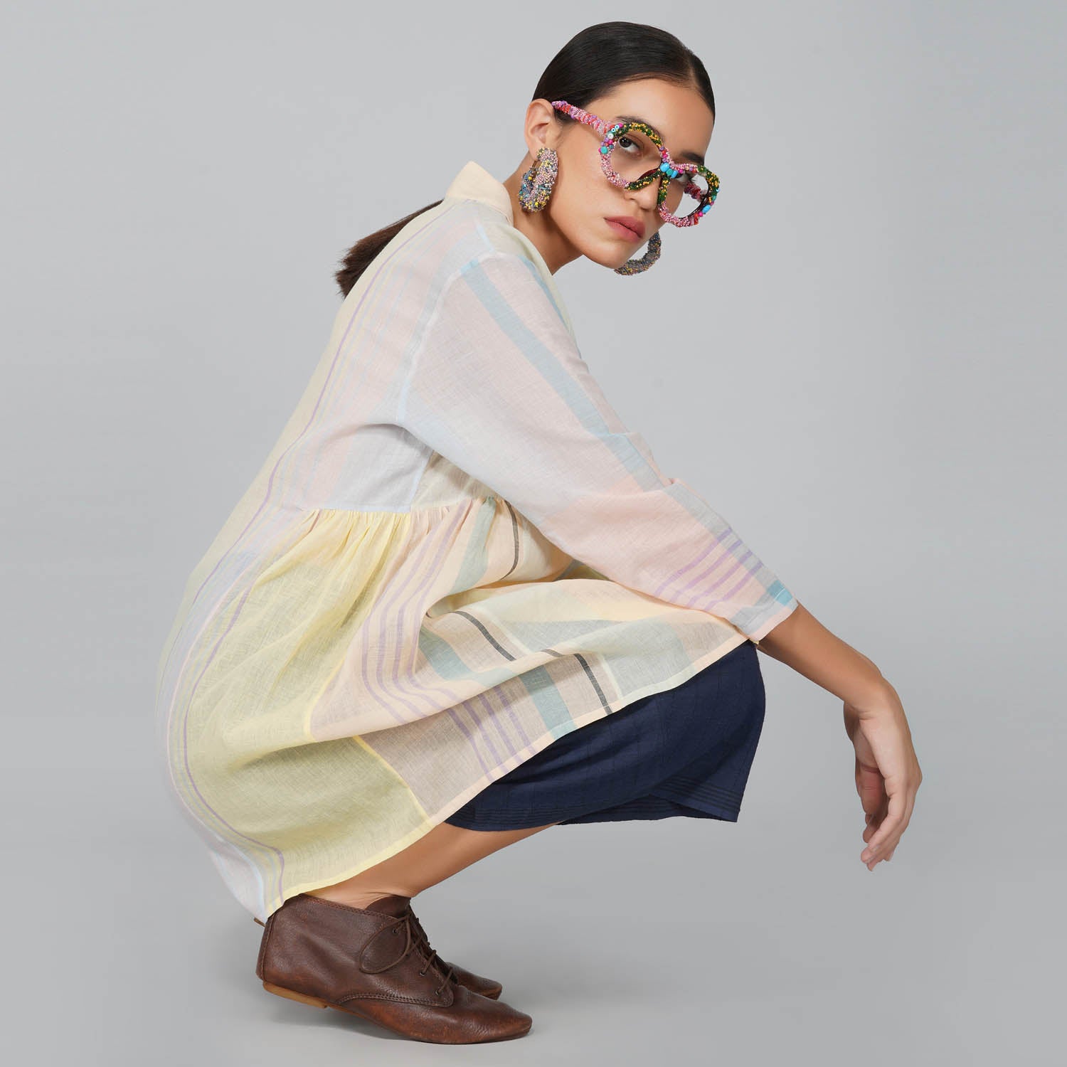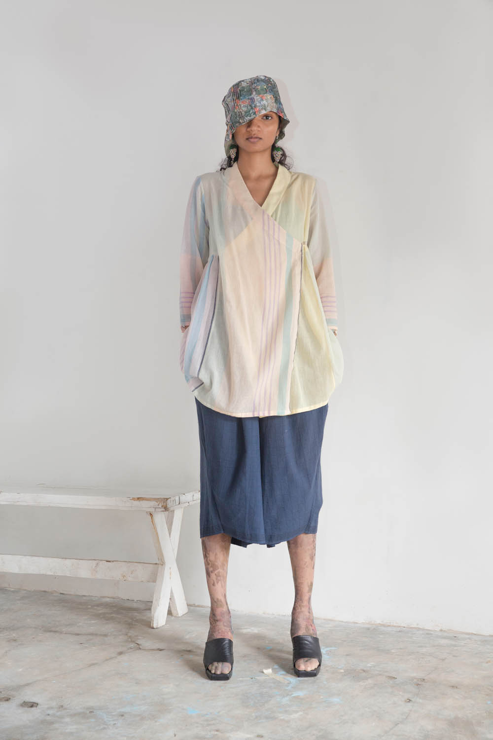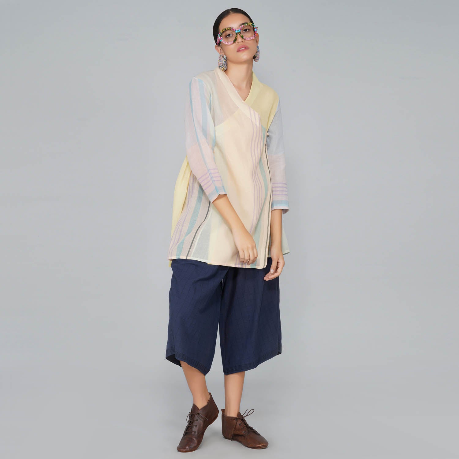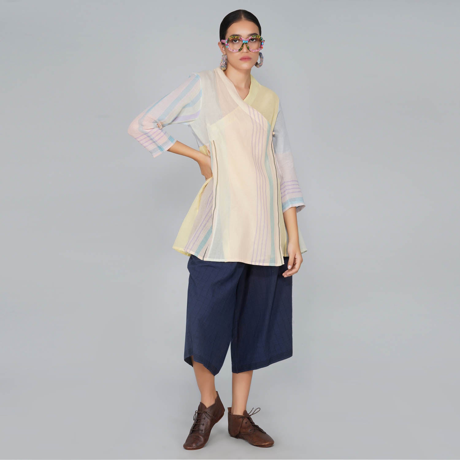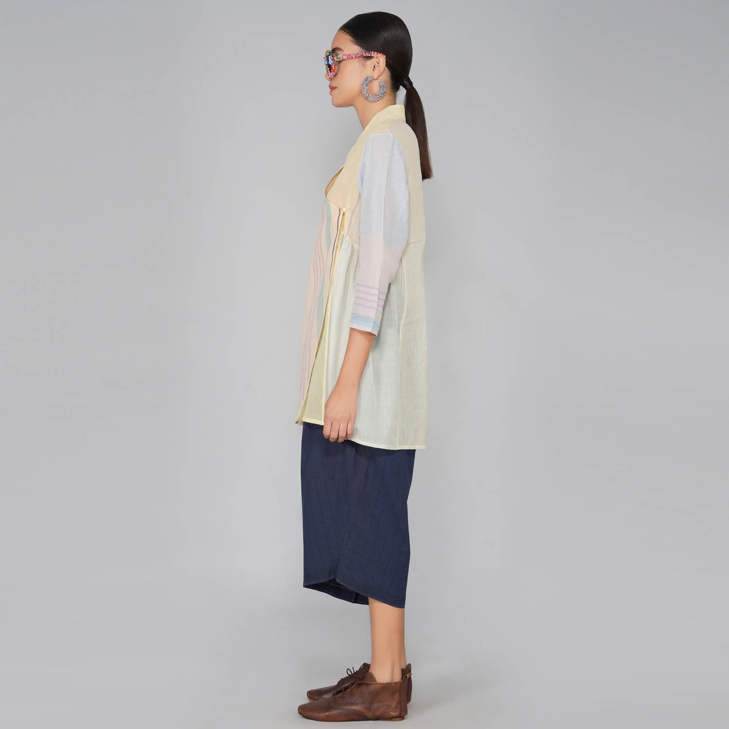 - Contemporarised Angarkha style cotton jamdani overlayer tunic