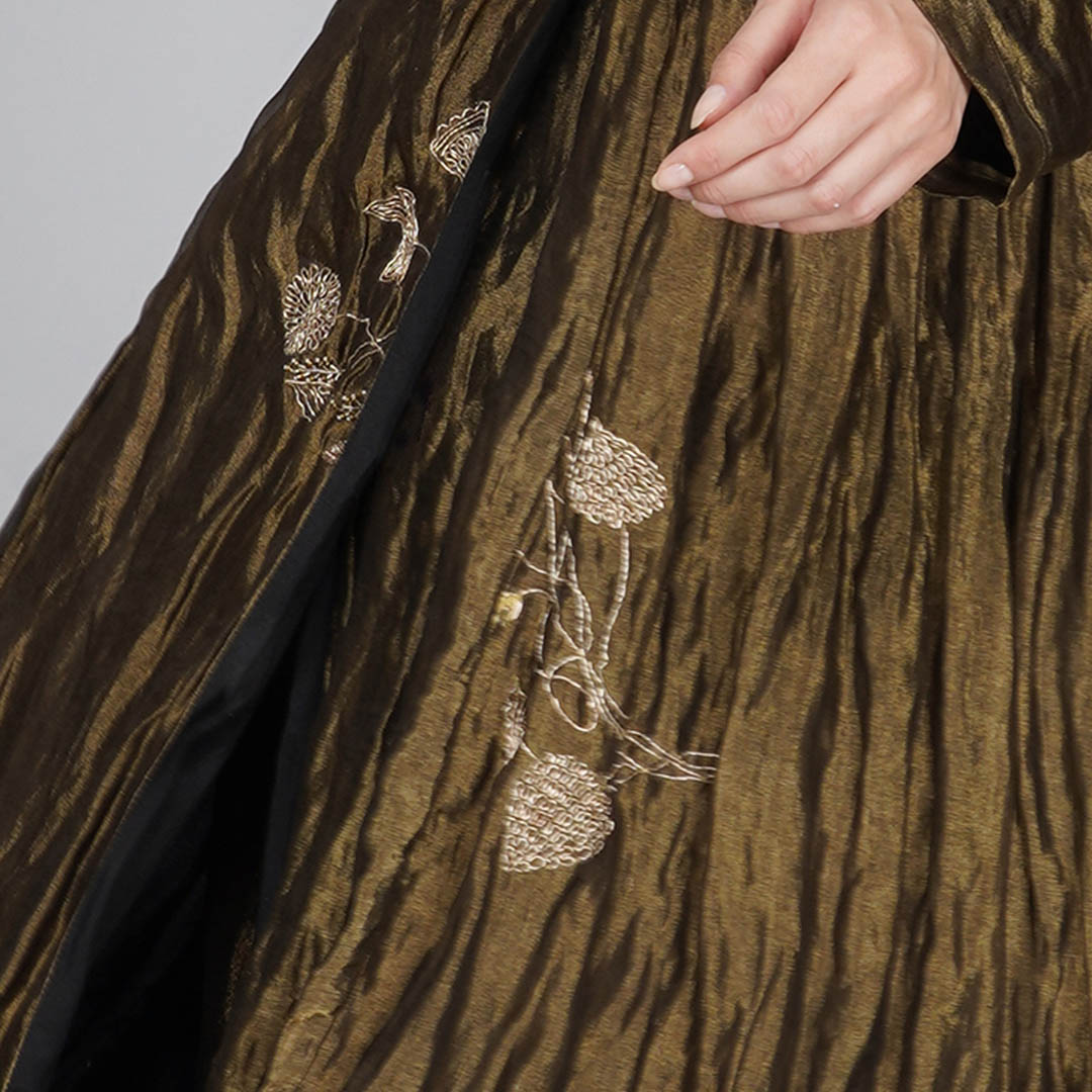 A curation of elegant party essentials and modern-festive pieces in rich textiles. Yavi brings together Intricate " adda work" with beautiful handwoven pure silk finely woven with zari .The exquisite shape of the dress has been inspired from traditional Persian angrakha silhouette which makes it both luxurious and comfortable.