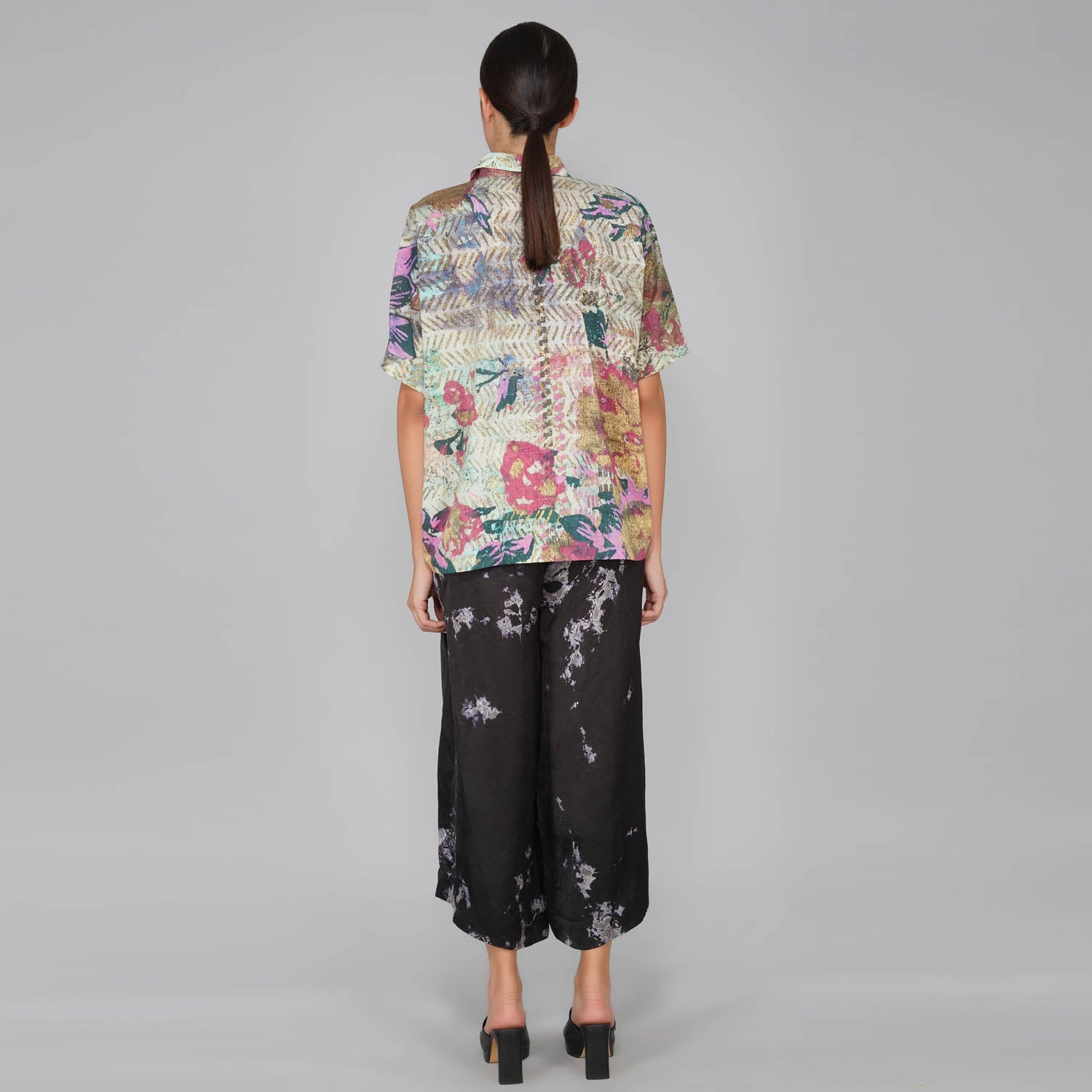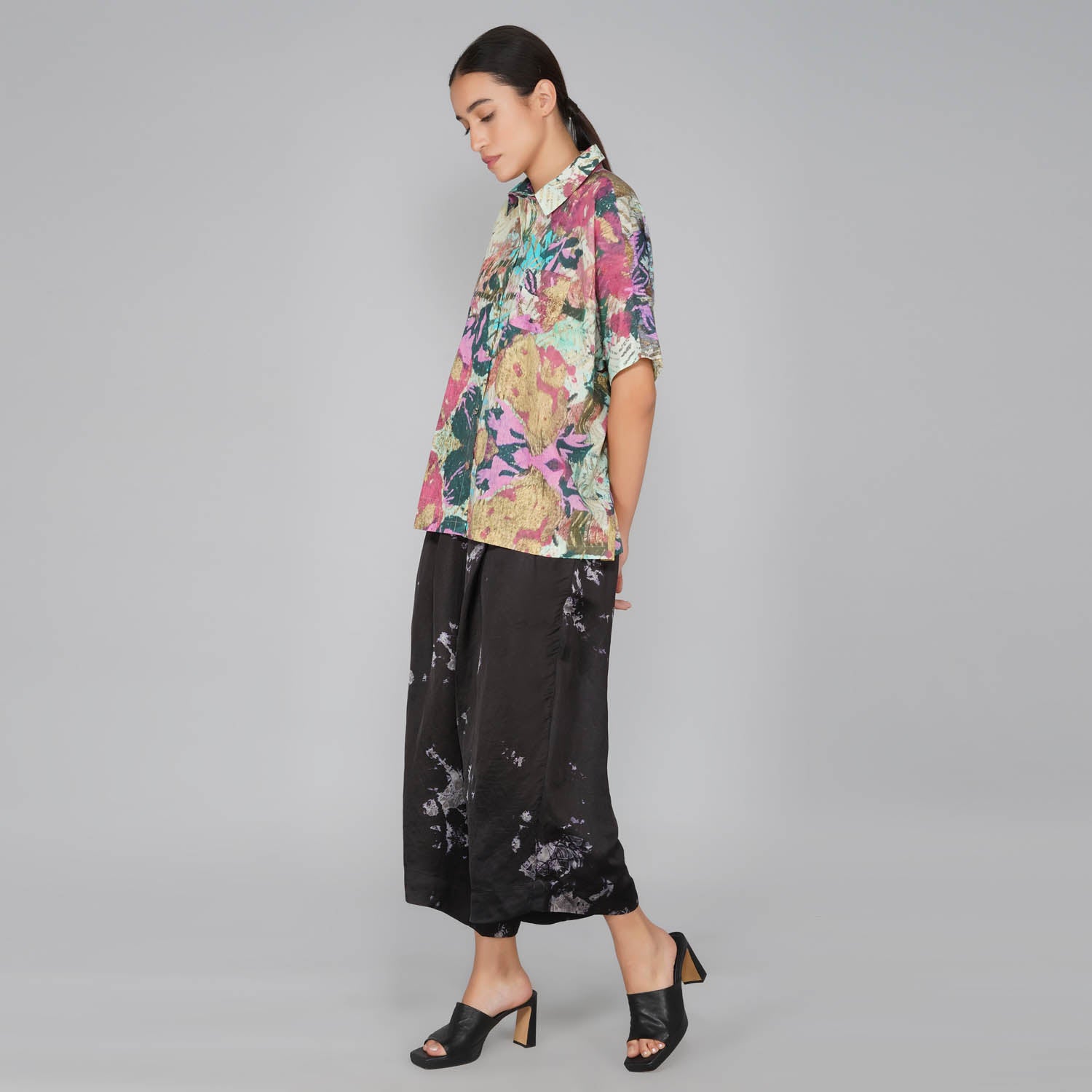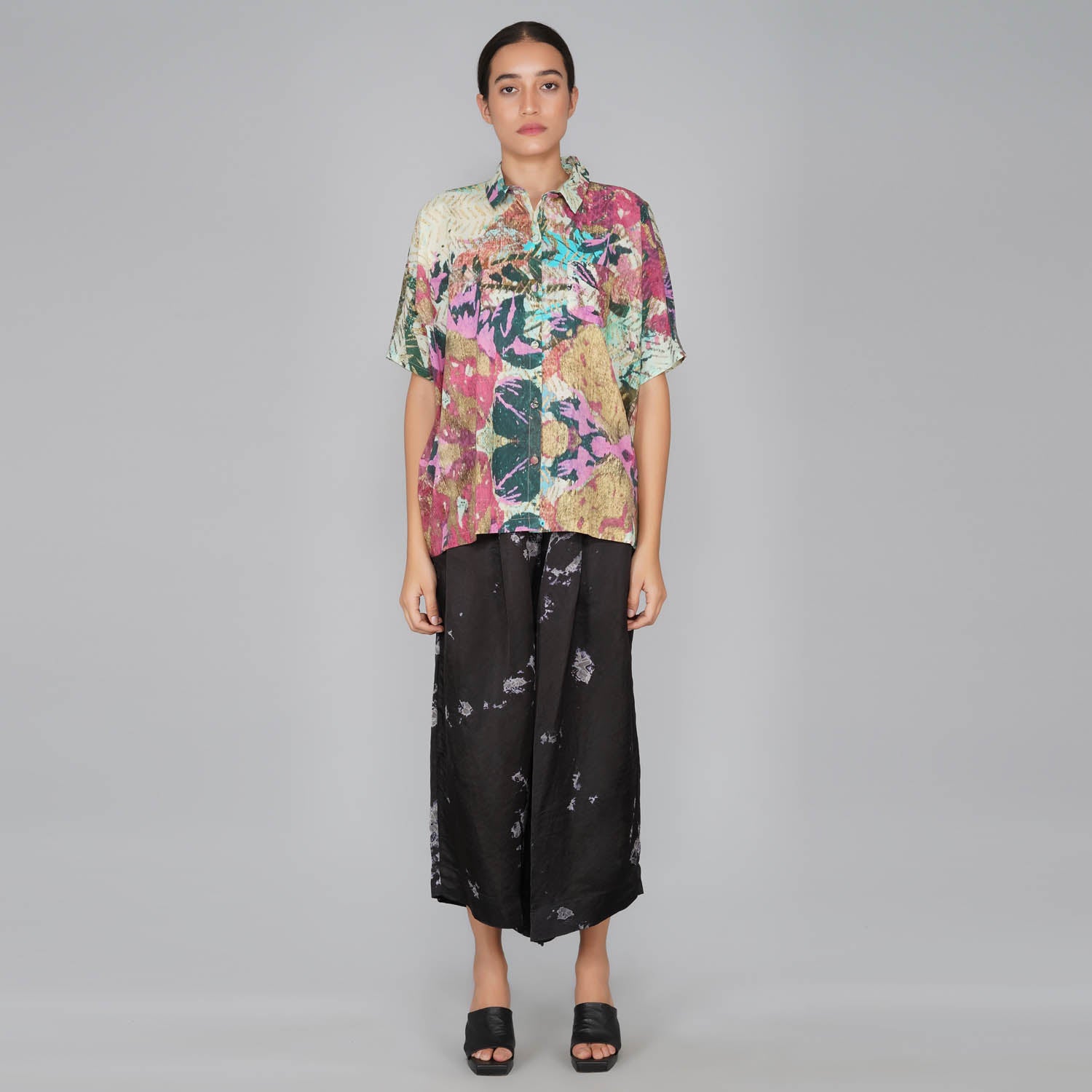 - Impressionist printed cotton button down top